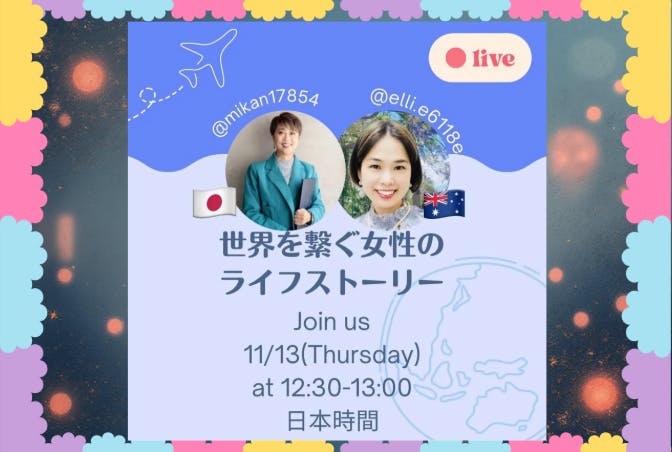 今回は、11/13にオーストラリア在住でご活躍のエリーさんのインスタライブに出演させていただきました際の様子をお伝えします。