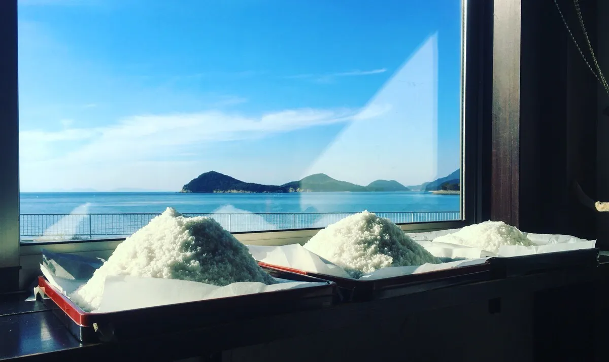 かつて仁尾は塩田で栄えた町でした。塩づくりに携わる中で私たちは、海の恵みが山の水脈に深くつながっていること、月の満ち欠けや海底湧水の質によって味が変わることに気づきました。自然の循環の中で生まれる「美味しさ」は、決して偶然ではなく、山と海が一体となって育んできたものだったのです。