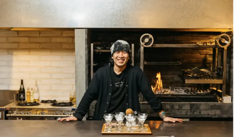 その後、「料理は手段であり、その先に団欒がある」と気づき、夢を叶えるごとに夢を更新。料理を軸にしたまちづくり、ケータリング、塩づくり、宿づくりと活動を広げ、現在は“まちをおいしくする”をキーワードに、地域の木材を活用した薪火グリル料理や自然体験を通じたコミュニティづくりにも取り組む。薪火グリルはクラウドファンディングによって実現したもので、1stゴール100万円を突破し、最終的に180人から180万1,400円の支援を集めるなど、多くの共感がかたちとなったプロジェクトの一つでした。