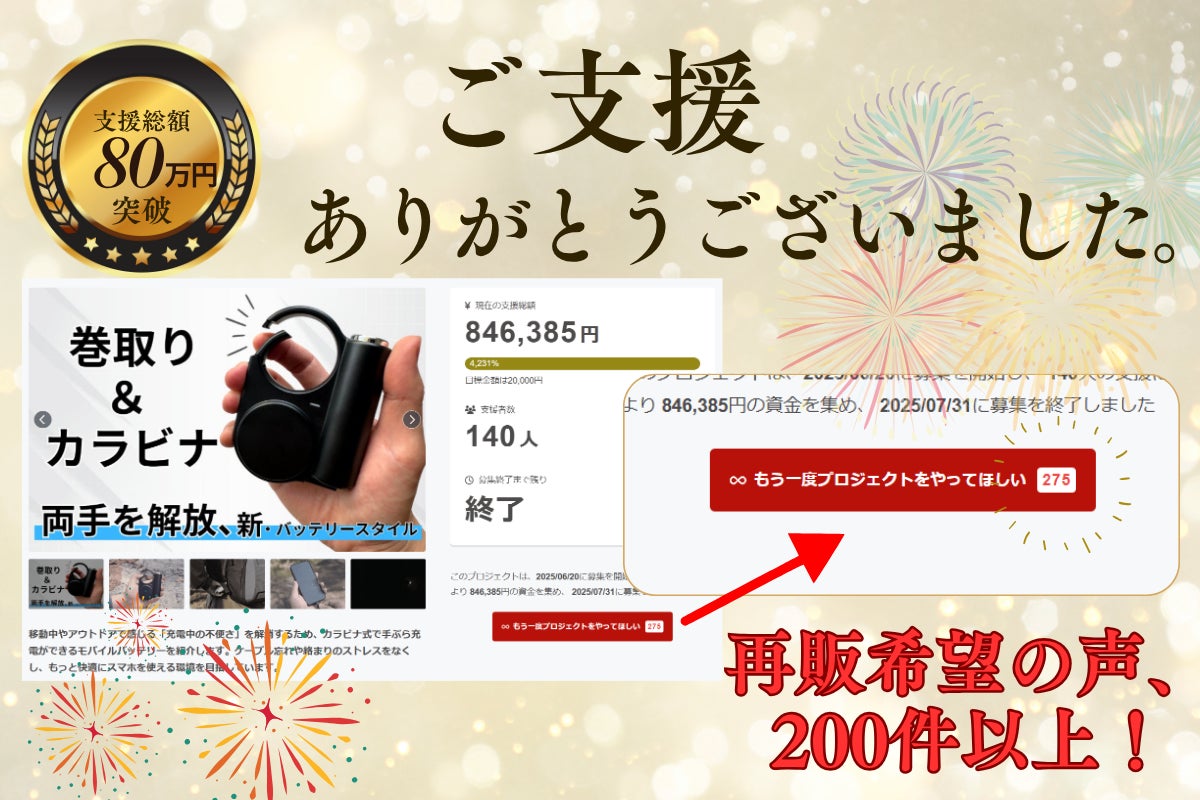 皆さまと一緒にこのプロジェクトを成功させ、快適な充電体験を広めていきたいと思っています。ご支援や応援をどうぞよろしくお願いいたします!