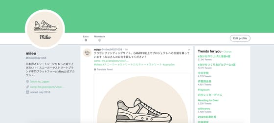 最近はスニーカーブームが再燃していると叫ばれていますが、僕はMileoというサービスを通してスニーカーシーンをさらに盛り上げて行きたいと考えています。