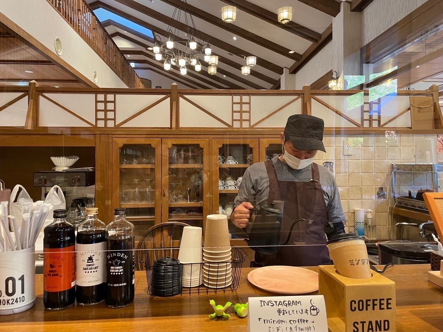 そんな素晴らしい場所でコーヒー豆を焙煎しているのが、MINDENのDAIです。TAKUは、幼い頃から何度もMINDENに通い、コーヒーの豆を挽いたり、ハンドドリップをさせてもらったりしてきました。まだコーヒーは飲めませんが(笑)その香りの良さにとても興味を持っています。