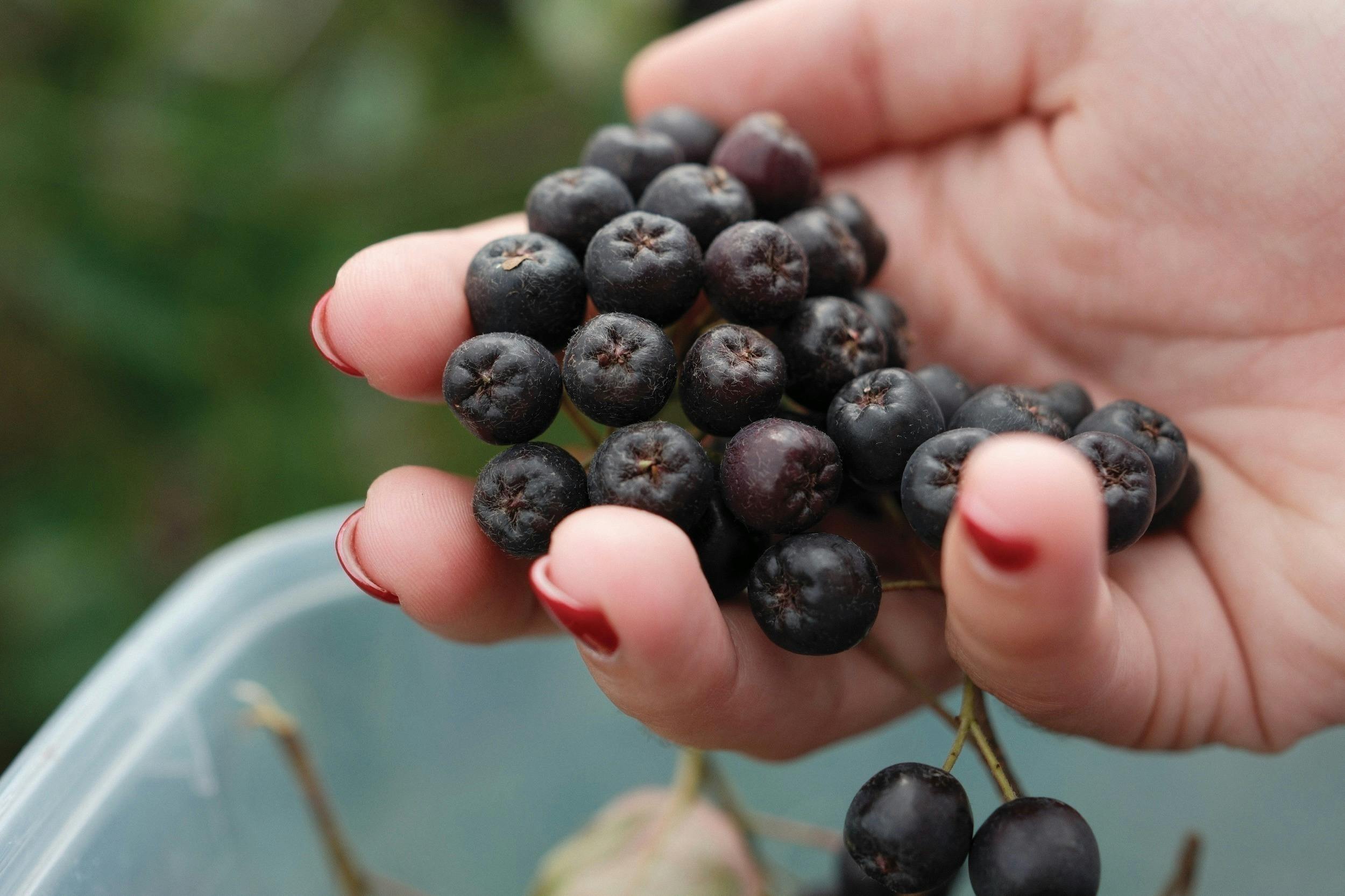 丁寧に手詰みされるジューシーなアロニアベリー