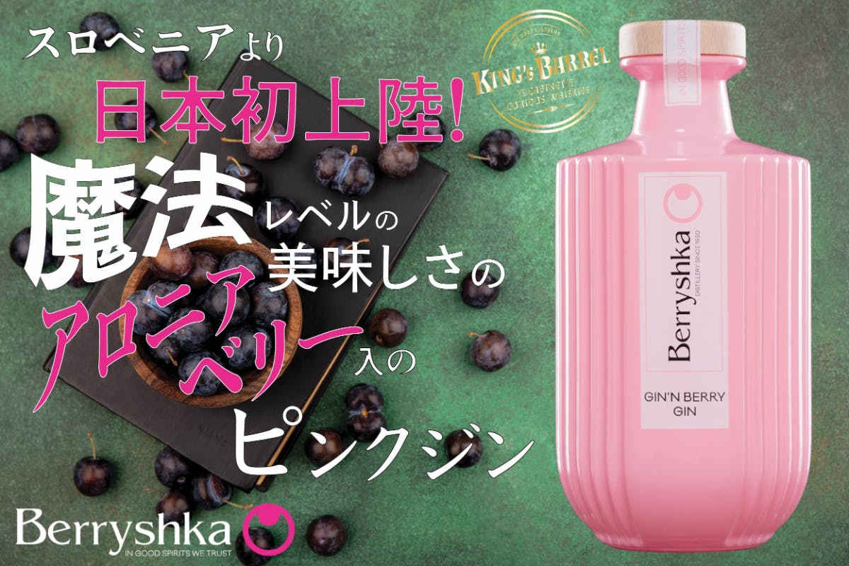 普段はドイツと北欧のウイスキーとスピリッツをメインに取扱うKING's BARRELが、一瞬で魅了された中欧スロベニアの美しくも美味しいお酒「ベリーシュカ」の第2弾は、スーパーフード「アロニアベリー」が加わったベリーシュカならではのピンク色のジン「ジン・エン・ベリー」!その新感覚の美味しい魔法にぜひ一緒にどっぷりとかかってみていただきたい!