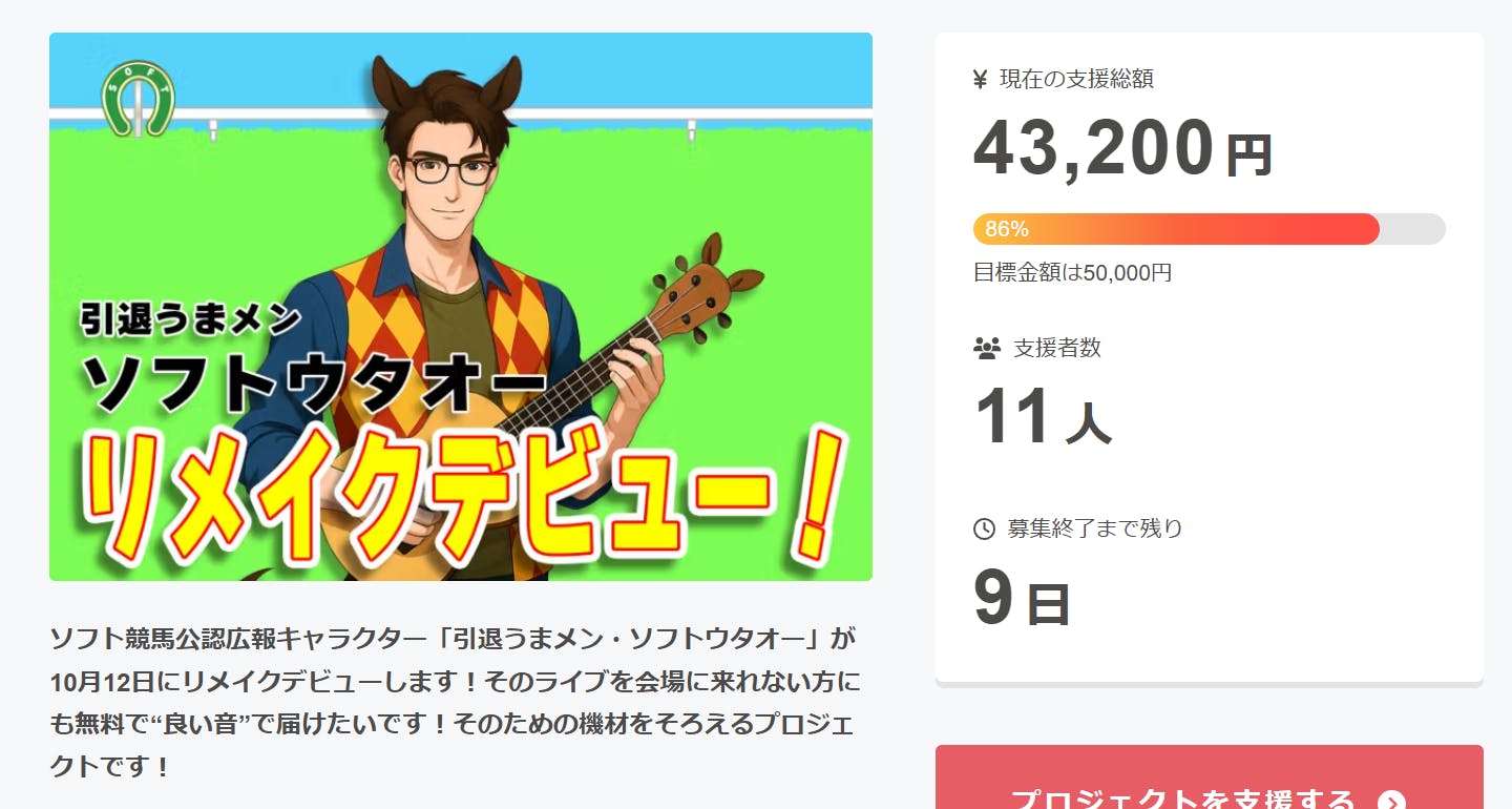おかげさまで現在のご支援総額は 43,200円(目標の86%) まで来ました!