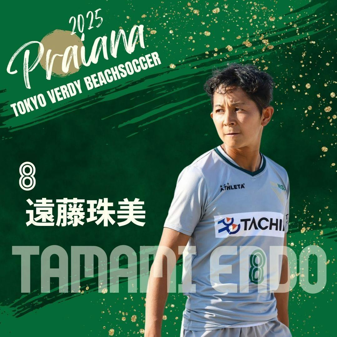 ユニフォームリターン選手紹介 【8】遠藤珠美選手の紹介です。対戦チーム誰もが恐れる走り屋。ビーチサッカー歴が長く、ほかのチームからもよく知られている選手だが、あだ名の「タム」の印象が強く、苗字の認知度がダントツ最下位のため、得点した際に記録係が苗字を思い出すことがなかなか出来ない。和菓子が大好き。