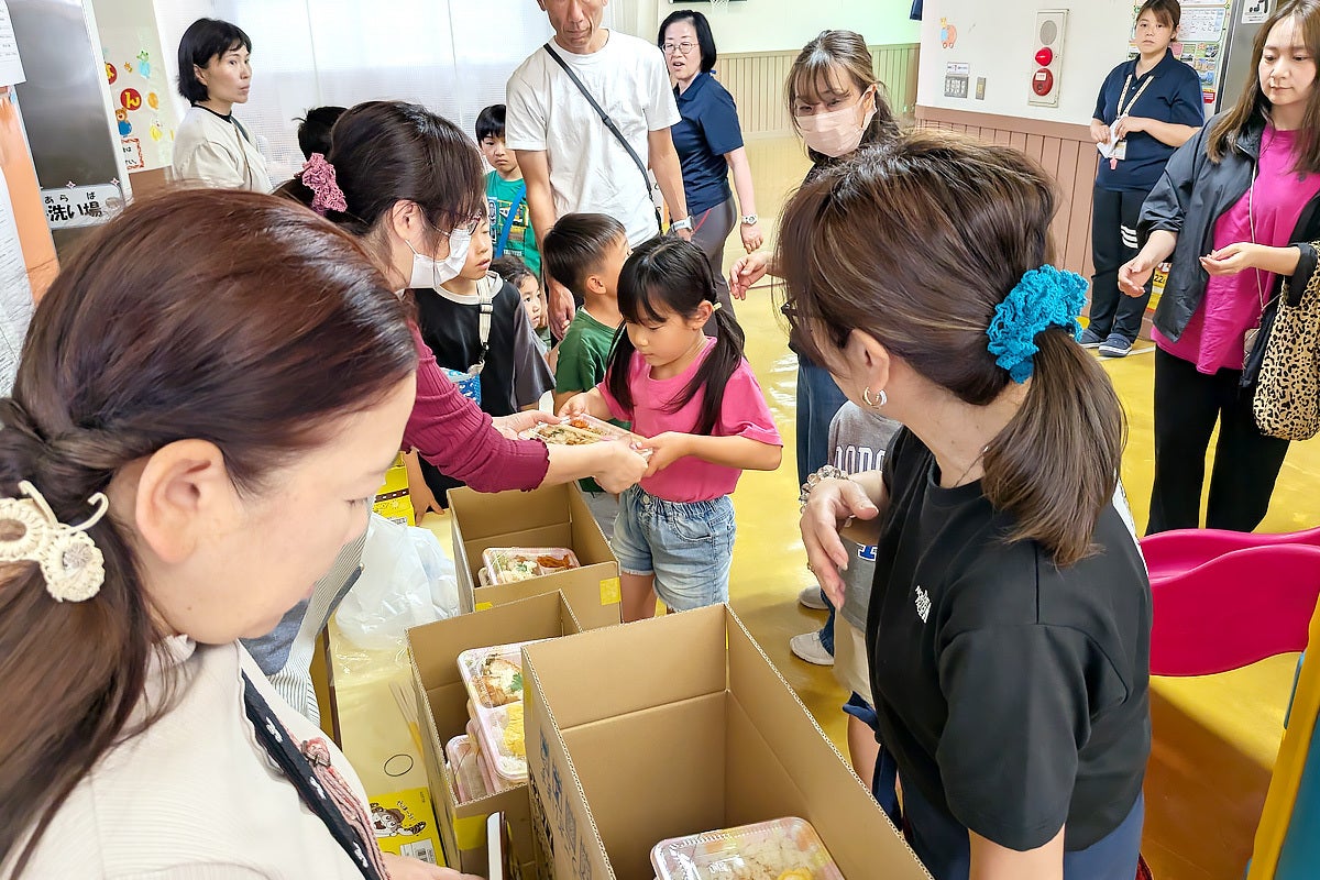 ごはんは、地元の旬の野菜やお米を使った、栄養バランスのとれた手づくりの日替わり定食。会場には、おしゃべりがはずむ食卓、絵本やおもちゃのある遊びスペース、そしてこどもたちの話にしっかり耳を傾ける大人たちがいます。帰るときには、小さなお菓子や本、手作りのプレゼントを手渡すこともあります。