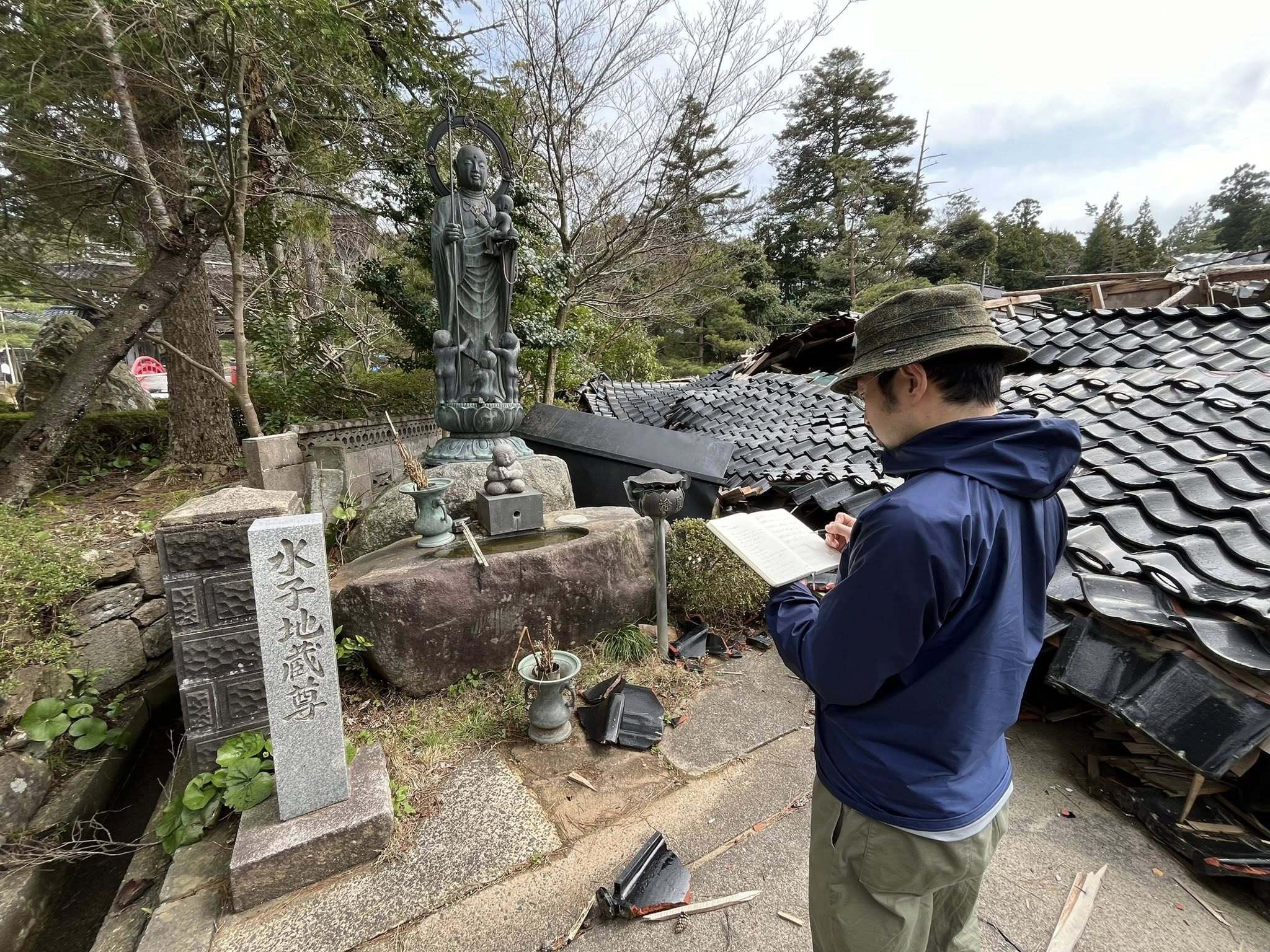 震災から約3ヶ月が経った頃、北方さんと能登を回る中で、奇妙な光景をいくつも目にしました。家々の玄関には、被害状況を示す「赤紙」や「黄紙」「緑紙」が貼られていました。まるで、トリアージされているかのような町並みです。同じ地盤のはずなのに、隣り合う家で無事なものと全壊したものがある。特に新築でもなさそうな家が、なぜか被害を免れているのです。