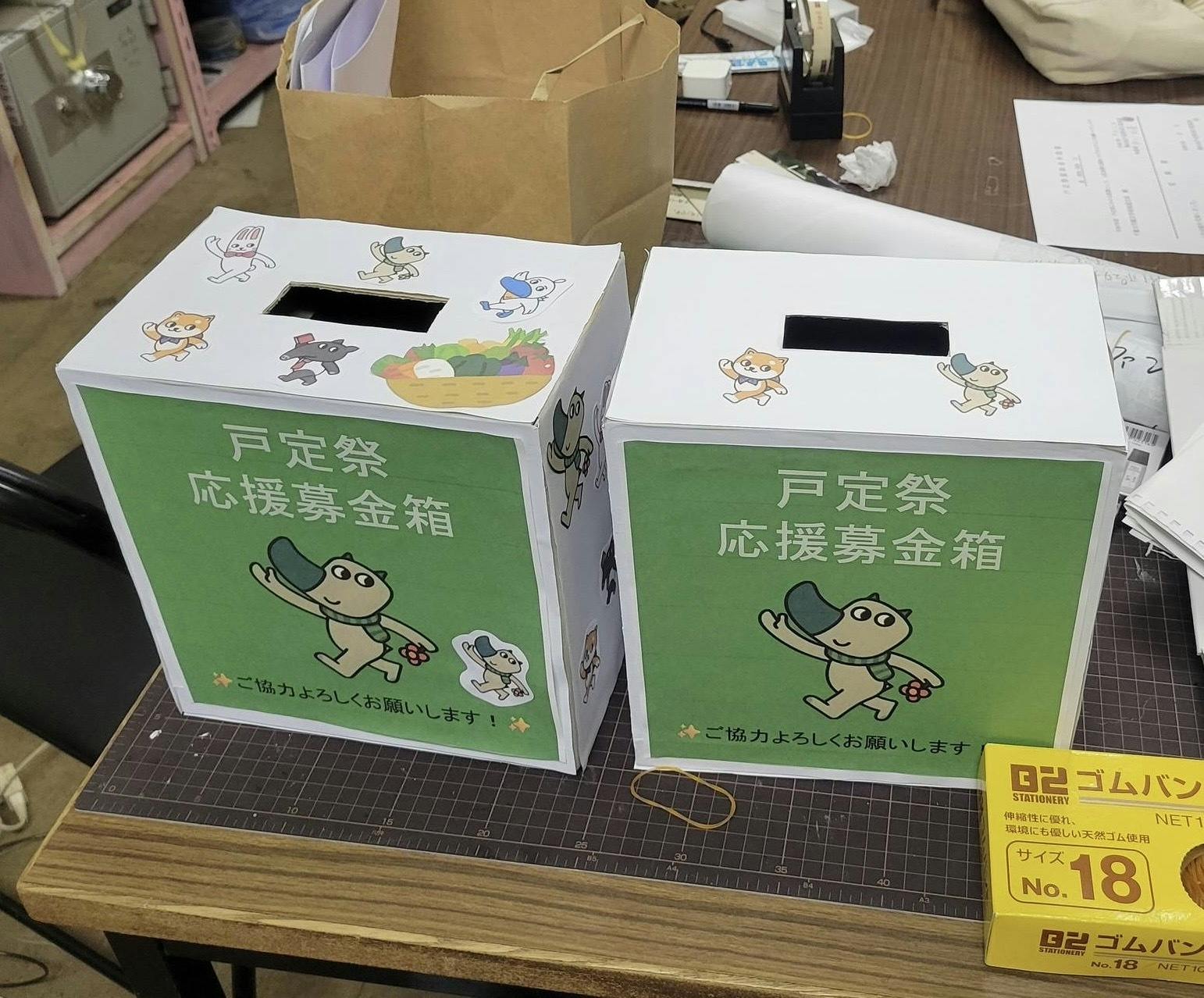 戸定祭実行委員会会計部の学生が学校へ集まり、心を込めて募金箱を手作りしました!