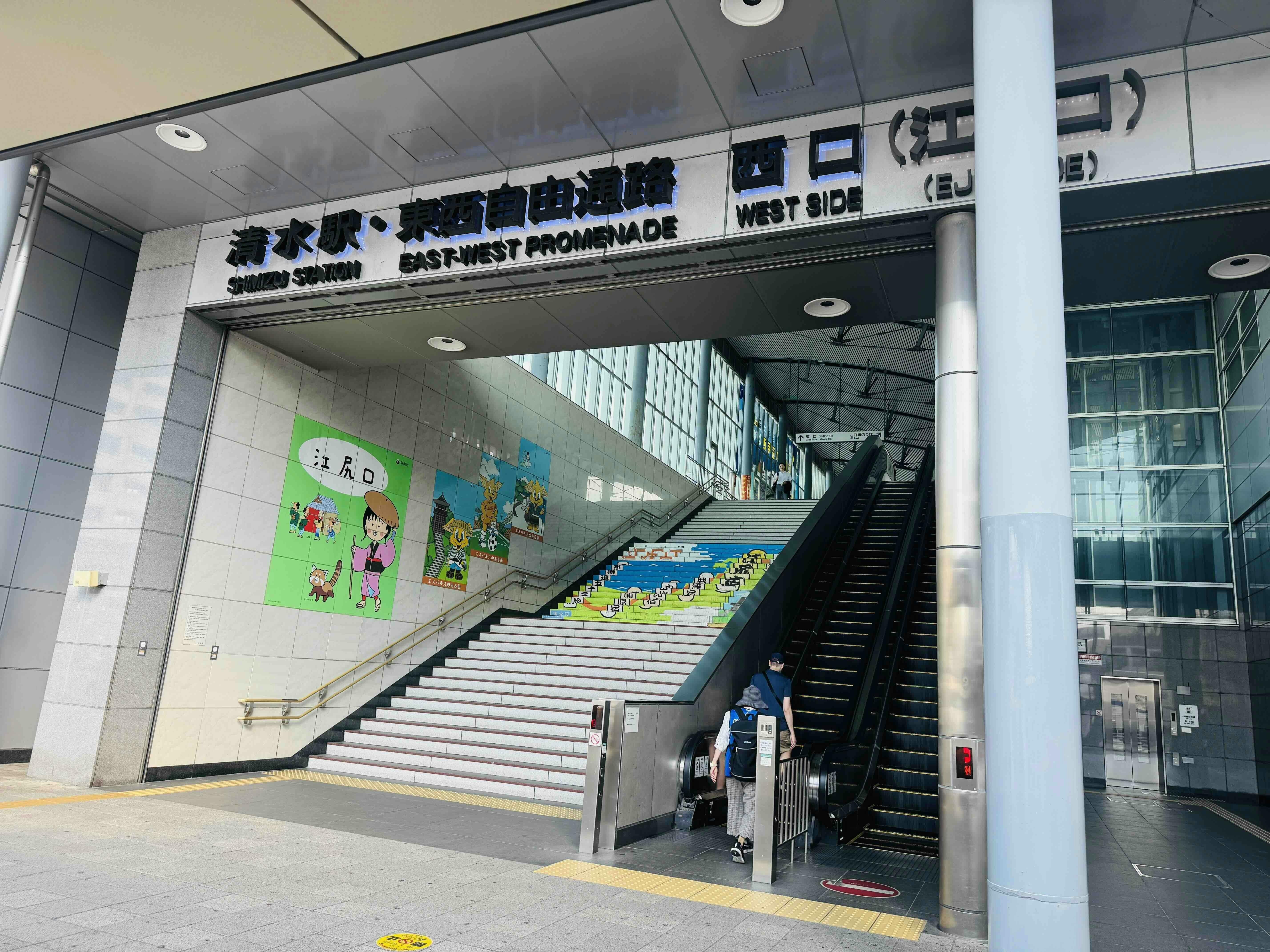 江尻は、東海道五十三次の宿場町『江尻宿』からの由来となっており、階段を降りると、ちびまる子ちゃんがお出迎えしてくれます。