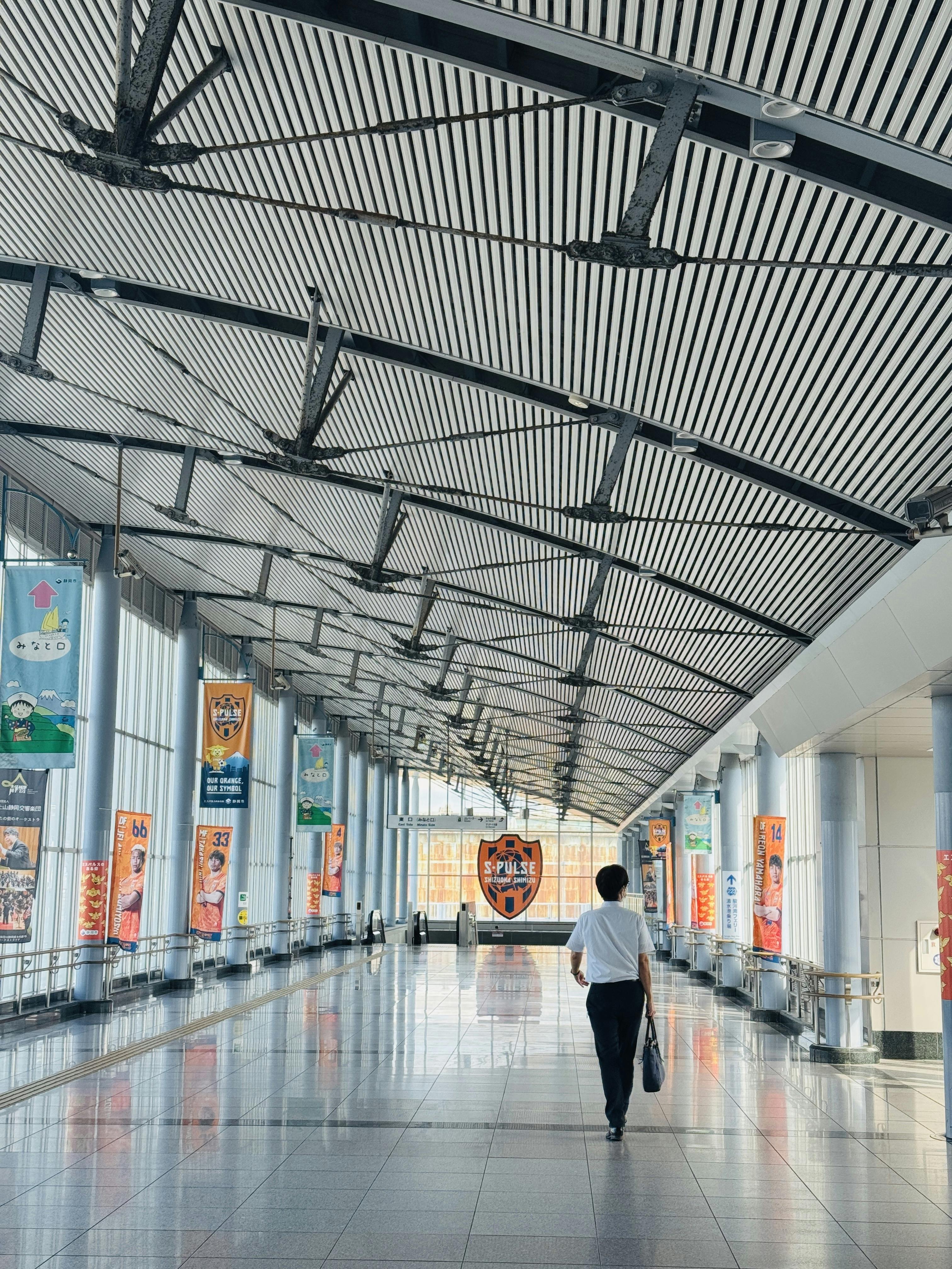 駅の改札は一つしかありません。改札を出て右側には、サッカーJリーグ『清水エスパルス』のエンブレムが大きく目に入ります。