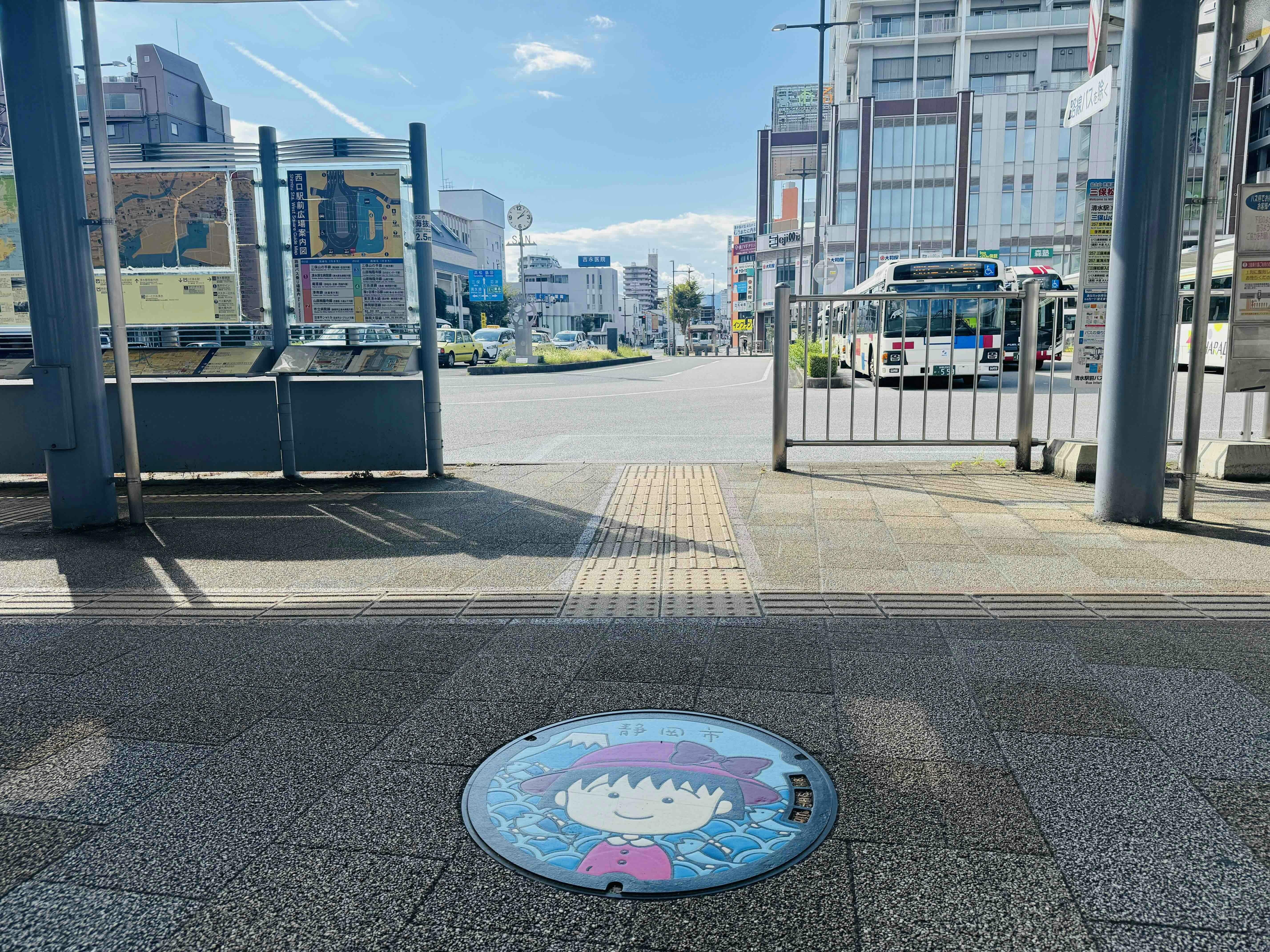 JR清水駅東口の直ぐそばには、マンホールの『ちびまる子ちゃん』がいますので、ぜひ、探してみてください。