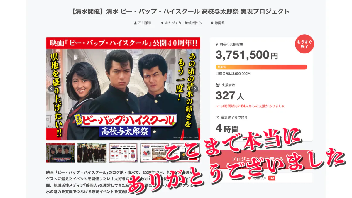 クラファン終了まで残り4時間、いよいよゴールが見えてきました
