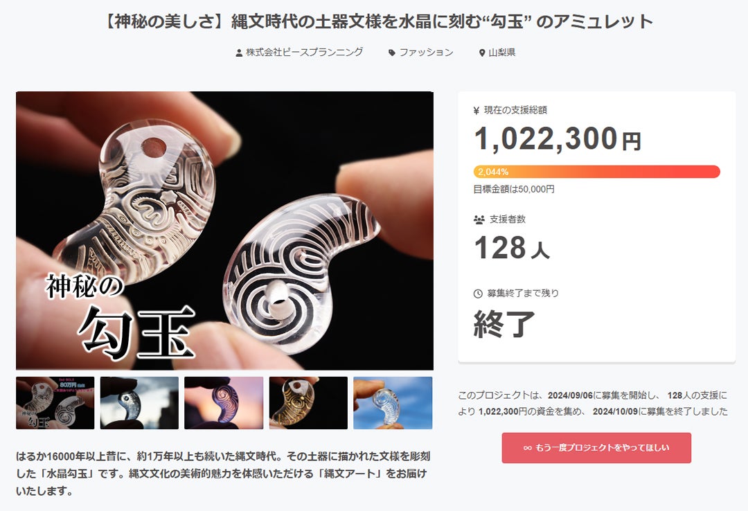 昨年は水晶の勾玉に文様を彫刻したプロジェクトを行いましたが、沢山の皆様にご購入いただき、ありがとうございました。