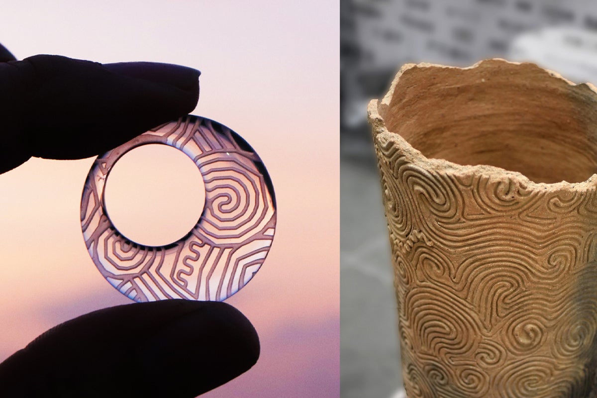 このプロジェクトでは、縄文時代の土器に描かれている文様を切り取ったような人工水晶とオニキスのペンダントをご紹介させていただきます。