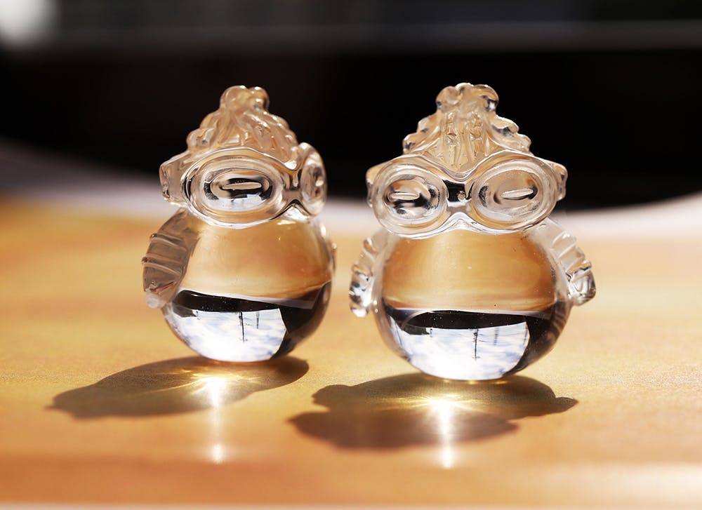 水晶は光の当たり方や背景によって、彫刻した縄文文様が様々な表情を見せてくれます。