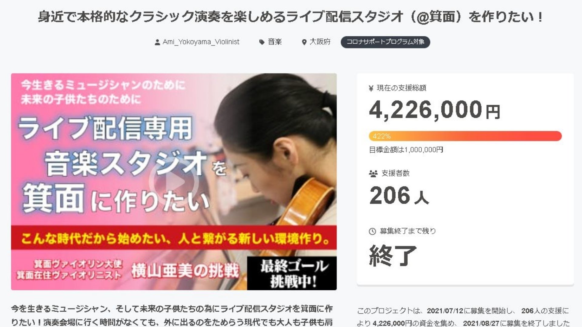 2025/09/15 20:43こんばんは、クラウドファンディング運営スタッフのシュウです。いよいよ本日がクラファン最終日となりました。このラストを皆さんと特別な形で迎えるために、本日は音楽家専門配信アプリ「コロム」にて、有料配信コンサートを開催いたします。コンサートでは、横山亜美のオリジナルCDに収録されている全曲を演奏します。今日のために伴奏音源を用意し、繰り返し練習を重ねてきましたので、ぜひ聴いていただけたら嬉しいです。▼コロムライブチケット購入ページhttps://corom.app/mp/5drXA22:00〜22:30 リハーサル 22:30〜23:30 本公演23:30〜23:59 ラストカウントダウンリハーサルとカウントダウンは無料でどなたでもご覧いただけますので「コロムってどんな雰囲気だろう?」と気になる方も、アプリをインストールして気軽にのぞいてみてください。そして23:30からは、クラファン終了に向けた【ラストカウントダウン】を行います。ここでは雑談を交えながら、これまでの道のり――楽しかったこと、苦しかったこと、そして皆さんからの応援で支えられた瞬間――を振り返りつつ、23:59のラストを一緒に見届けたいと思います。この時間は無料で参加できますので、ぜひ一緒に歴史的な瞬間を迎えていただければ幸いです。武田直子さん、そして運営スタッフである私も共に、皆さんと最後を見届けます。ここまで走ってこられたのは、ひとえに応援してくださった皆さんのおかげです。改めて――心からの感謝を申し上げます。本当に、本当にありがとうございます。クラファン終了まで残りわずか3時間。最後の最後まで精一杯やりきりますので、どうぞよろしくお願いいたします。 もっと見る