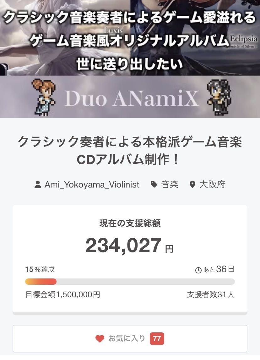 【ゲーム音楽風オリジナルアルバムを世に広めたい】本プロジェクトの応援を引き続き、みなさま、よろしくお願いいたします❤︎