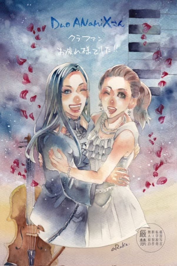 2025/09/17 19:00こんにちは!9月15日23:59を持ちまして、「クラシック音楽奏者によるゲーム愛あふれるゲーム音楽風オリジナルアルバムを世に送り出したい」のクラウドファンディング終了と相成りました。ありがたいことに、支援金100万円を突破!支援者様134名による熱いご支援のおかげで、本当に素晴らしい結果に私たちは恵まれることになりました...それでは、デュオアナミクスそれぞれからのお礼メッセージを長くなりますが、掲載させていただきます。※各メッセージはクラウドファンディング明けた直後の9/16にそれぞれのSNSで掲載したものとなりますまずは武田直子さんから⬇︎【クラファン終了しましたーーー‼お礼報告】9/15をもちまして、私たちのクラウドファンディングは無事に幕を閉じました。8/9から始まり、約1ヶ月。配信、動画、活動報告、SNS発信…そして母として、仕事をしながら、その合間に走り抜けてきた日々。最後は支援者様134名、67%、100万を超えるご支援お気に入り登録者様119名。数字以上に、そこに込められた想いに、ただただ胸がいっぱいです。ここまで一緒に駆け抜けてくださった皆さま、本当にありがとうございました。この挑戦を通して出会えた方々。ずっと支えてくださっているファンの皆さま。拡散や応援、声をかけてくださったひとつひとつが、私たちの背中を押し、最後まで走る力になりました。ゲーム音楽風オリジナル曲。最初は受け入れてもらえるか不安でした。けれど――「CDが待ちきれない」「この曲が好き」そんな言葉にどれだけ救われ、心が震えたか。そしてファンアートまでいただいて、涙が出るほど嬉しかったです。このクラファンがなければ出会えなかったご縁に、心から感謝しています。これから返礼品の発送を準備してまいりますので、どうか楽しみにお待ちくださいね。そして――9/20(土)は返礼品コンサート。この日は、生楽器の響きとともに、私たちの精一杯の想いを込めて演奏します。亜美ちゃんの解説MCや交流会で、皆さまとより深く繋がれる時間になればと願っています。この1ヶ月、夢を一緒に走ってくださり、本当にありがとうございました。心からの愛と感謝を込めて。画像は【戦刃の閃き】のファンアートを描いてくれたaRuKoさんがクラファン終了した日に描いてくれたアートです( ¨̮ )もう素敵すぎる❤︎ありがとうございます︎!--------------続きまして横山亜美⬇︎【クラファンを無事終えたお礼メッセージ】朝からバタバタしていましたが、やっと落ち着きました!8月9日から走り抜けてきたように思いますが、やはり最後の1週間は秒刻みで忙しかった記憶が...毎朝毎晩、クラファンページをチェックしながらドキドキする日々も、ついに終わりの時を迎えました( ;∀;)結果をご覧ください...個人レベルのアルバム製作の規模感と として考えれば、驚くほどの多大なるご支援を私たちデュオアナミクスは受けることができました╰(*´︶`*)╯直子さんにとっては初めての、私にとって挫折から立ち上がっての、2人のクラウドファンディング。自分たちの「心の中での目標」金額を、しっかり達成した上で終われたことも嬉しいですが、それと同じくらいに嬉しいことが他にもあります。それは、「新しい人たちとのご縁」私たちのことをよく知らなかった、そんな方々とたくさん知り合うことができました。今まで少し知ってたけど、今回をきっかけにもっと好きになった、とも...本当に、奇跡が、今回のクラウドファンディングではたくさん起こっていました。そのような新しいご縁に恵まれる中で生まれたこちらのファンアートも、「奇跡」の一つだと思います。クラウドファンディング終わった直後の記念アート、一生の宝物です!aRuKo_00 さん、ありがとうございます( ;∀;)私たちの活動を通して、たくさんの方が刺激を受けてくださった、もっと知りたいと思ってくれた、もっと聴きたい、そんな感情を持ってくださる方が増えたのなら今回の私たちにとってのクラウドファンディングは「大成功」なのです。本日より少しずつ発送作業の準備に入っていきますので、どうか楽しみにお待ちくださいませ。また、9月20日に支援者様向けリターンコンサートを大阪でやりますので、まだまだ熱は冷めやらぬ、というやつです(^∇^)これからも見守ってください。そして末長く今後ともよろしくお願いいたします(๑>◡<๑)動画投稿は落ち着いたら再開しますのでお待ちくださいませ。-------クラウドファンディングをご支援、拡散ご協力いただきました皆様、誠にありがとうございました!最後にクラファン期間中、もしくは終了の際にお寄せいただきましたファンアートを改めてご紹介させていただきます。今後も活動の展開はどうなっているかの報告を継続させていただきますので、どうぞ引き続き楽しみにお待ちくださいませ。aRuKo_00さまより【雷光石火】aRuKo_00さまより【戦刃の閃き】NewOchinaさまより【AMI YOKOYAMA】aRuKo_00さまより【クラファン終了