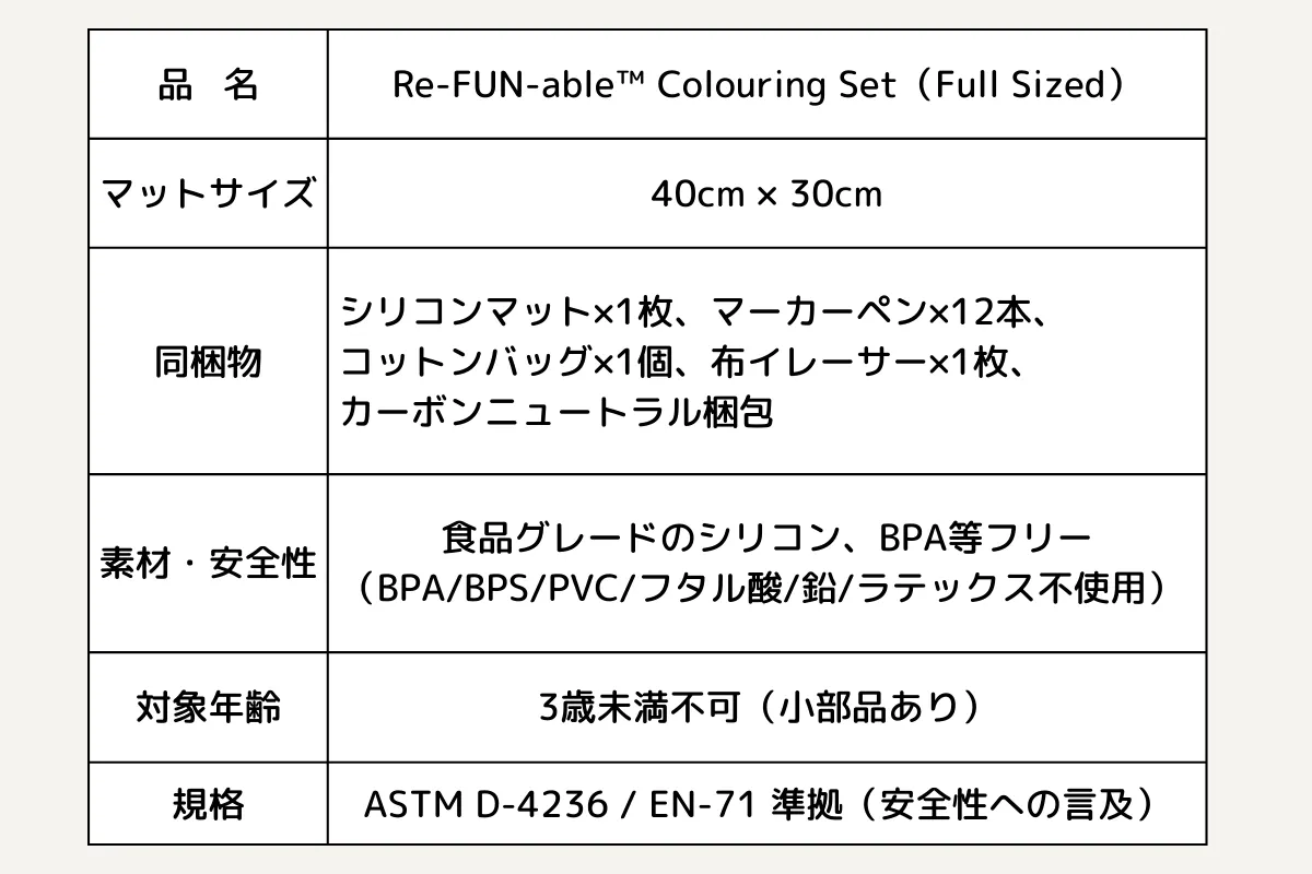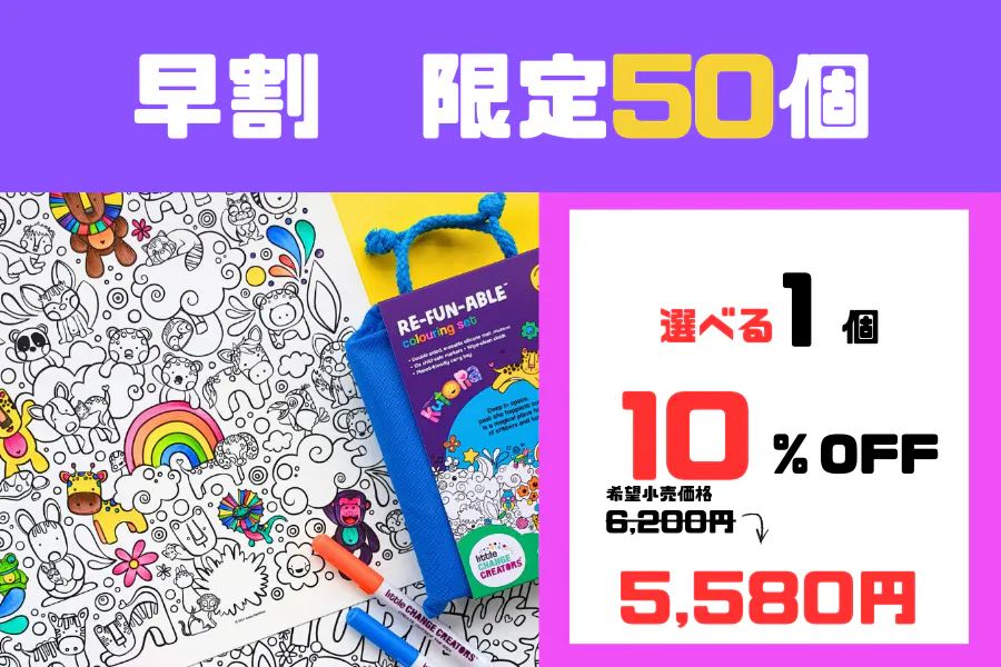 今回ご紹介する、繰り返し使えるシリコンマットのぬり絵 「Re-FUN-able™ Colouring Sets」 との出会いは、オーストラリアの展示会がきっかけでした。可愛らしいデザインとテーマの豊富さに加え、実際に触れて驚いたのが、シリコンマットの丈夫さと品質の高さ。さらに国内外での受賞実績もあり、「これは日本のご家庭にもきっと喜ばれる」と確信して、ぜひ届けたいという想いを持って帰国しました。