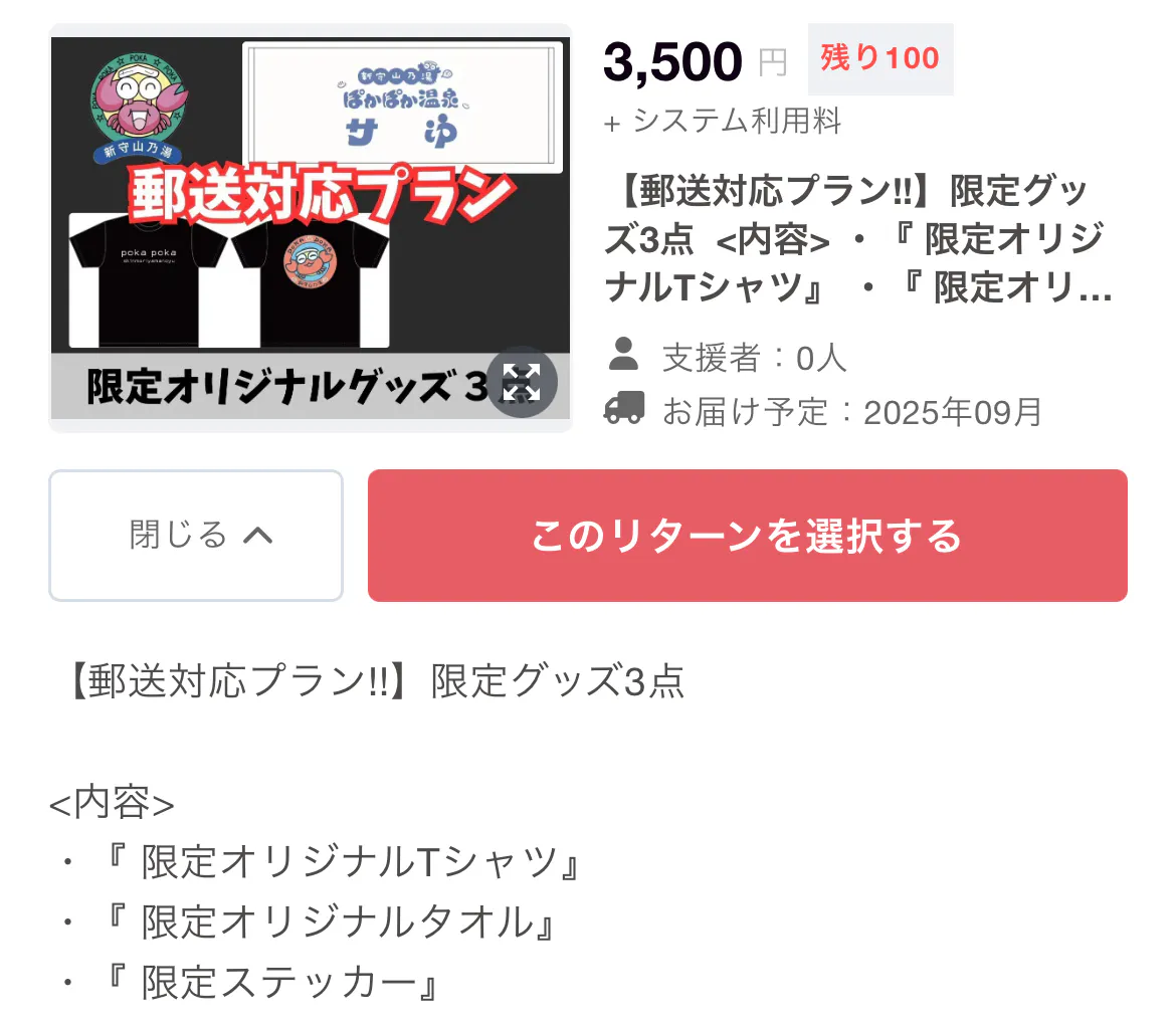 そこでこの度、遠方にお住まいの方にもご参加いただけるよう、「郵送対応リターン」 を新たに追加いたしました‼