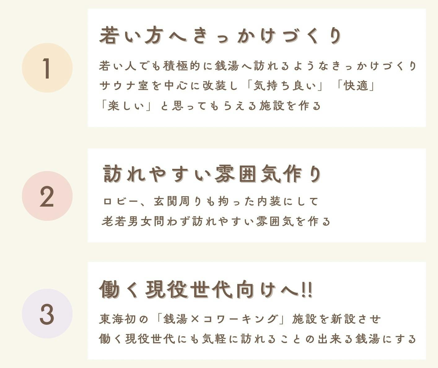 銭湯に多くの方が足を運ぶきっかけとなるような施設にしたい...