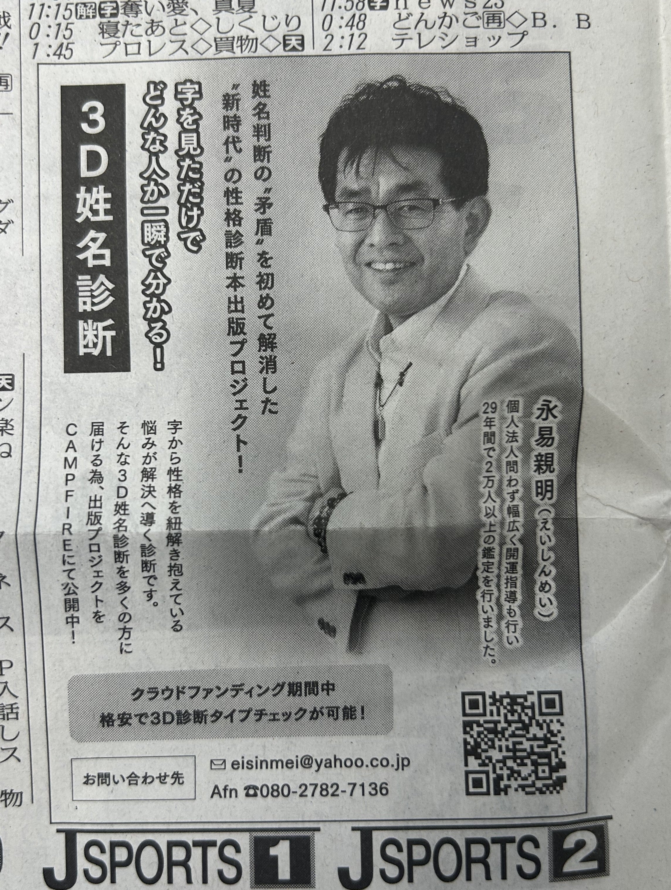 2025年8月22日スポニチに広告が掲載されました。九州山口版になります。宜しかったら手に取って見てください。