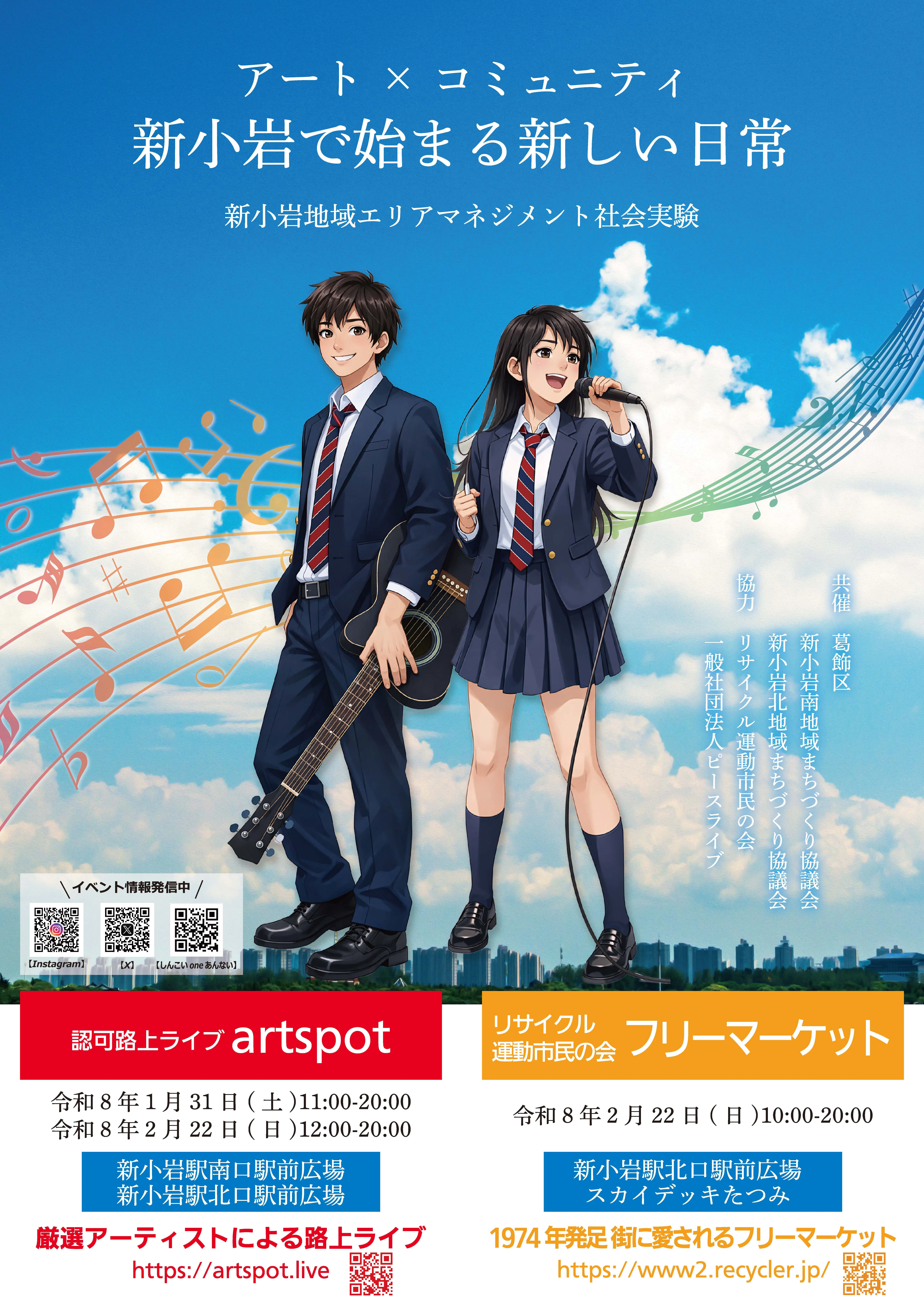 2026/02/17 19:00いつも葛飾呑んべクラフトプロジェクトを応援いただき、ありがとうございます!■ 2/22 新小岩駅前の音楽&フリマイベントに出店します!2月22日(日)に開催されるイベント「アート×コミュニティ 新小岩で始まる新しい日常」への出店が決まりました!本イベントは、音楽やアートを通じて新小岩駅前に新しいにぎわいと交流を生み出す、新小岩地域エリアマネジメントの社会実験を兼ねた取り組みです。1/31に実施されたイベントの第2弾となります。当日はさまざまなジャンルのアーティストが駅前広場に集まり、新小岩のまち全体が音楽に包まれる一日になります。さらに今回はフリーマーケットも同時開催!北口スカイデッキには約40店舗が並ぶ予定です。私たちは北口駅前広場にて、葛飾オリジナルのクラフトビール「葛飾呑んべクラフト」に加え、プロジェクト発起人が店主を務める「トリサカバ ハイカラ」のフードも販売予定です。今回販売するビールは、レモン香る爽やかな「葛飾レモンヴァイツェン」に加えて、2月12日に発売したばかりの新作「葛飾コーラポーター」をご用意します。黒ビール×コーラという新感覚のクラフトビールをぜひお楽しみください!2月12日に登場したばかりの「葛飾コーラポーター」葛飾呑んべクラフトのシリーズ第一弾「葛飾レモンヴァイツェン」「まちのビールを呑みながら、まちのイベントに参加する。」そんな体験を、ぜひ現地で一緒に楽しみましょう!■ イベント概要・イベント名:アート×コミュニティ 新小岩で始まる新しい日常・日時:2月22日(日)10:00〜20:00・場所:新小岩駅 北口駅前広場/南口駅前広場※天候等により中止となる場合があります。お近くの方はぜひご来場ください。みなさまにお会いできることを楽しみにしております!引き続き、葛飾呑んべクラフトプロジェクトをよろしくお願いいたします。 もっと見る