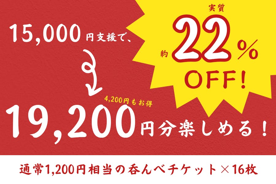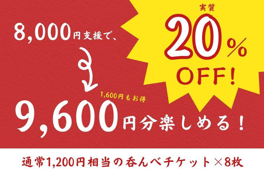・金額の高い支援(チケット)の方が割引率が高いため、何人かで参加予定の方や対象店舗の常連さん同士は、ぜひ複数人での共同購入もご検討ください。