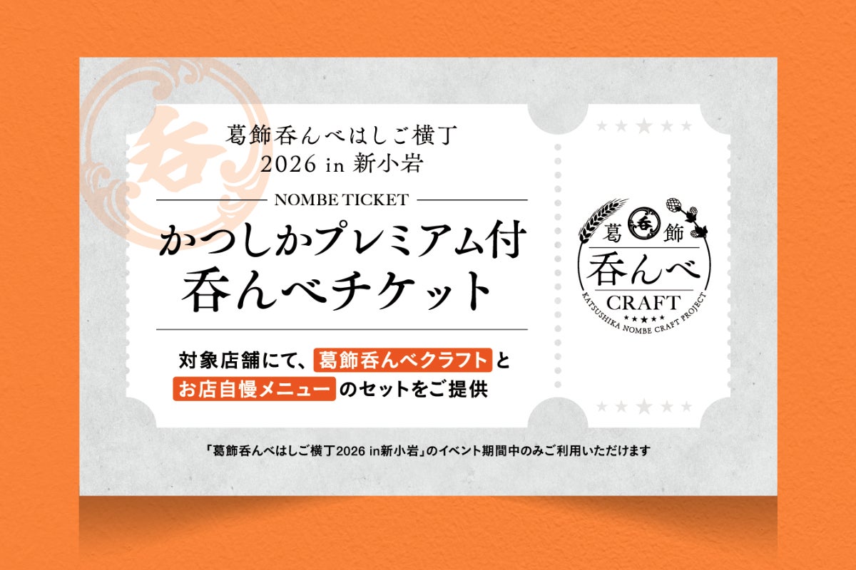 すでに動いている企画に、新小岩の飲食店をめぐるイベント「葛飾呑んべはしご横丁2026 in新小岩」があります。これは、イベントのチケット「かつしかプレミアム付呑んべチケット」を購入した方に、対象店舗にて葛飾呑んべクラフトと店自慢のおつまみのセットをお得にご提供するという企画です。