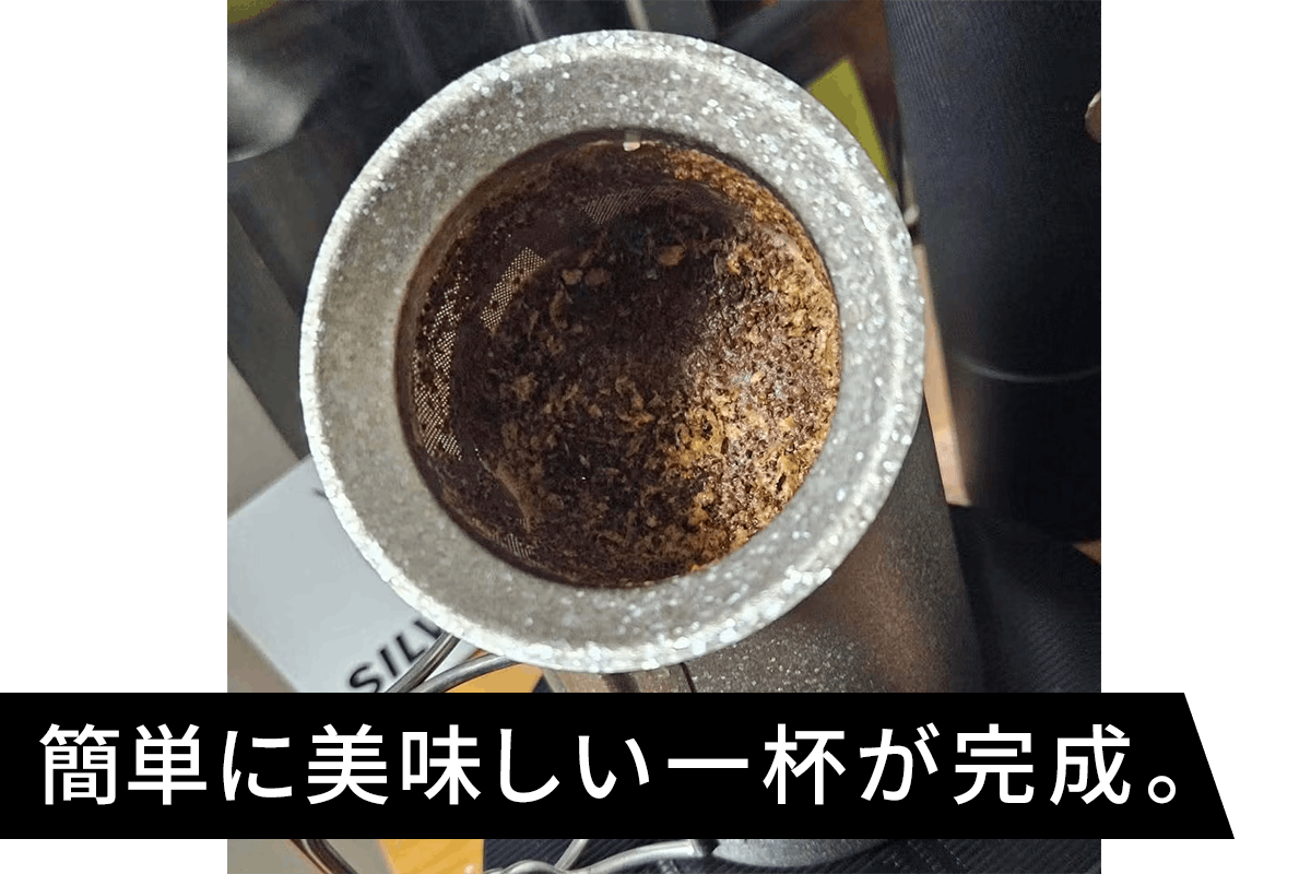 金属フィルターのような感覚で、簡単に美味しい一杯が完成します。