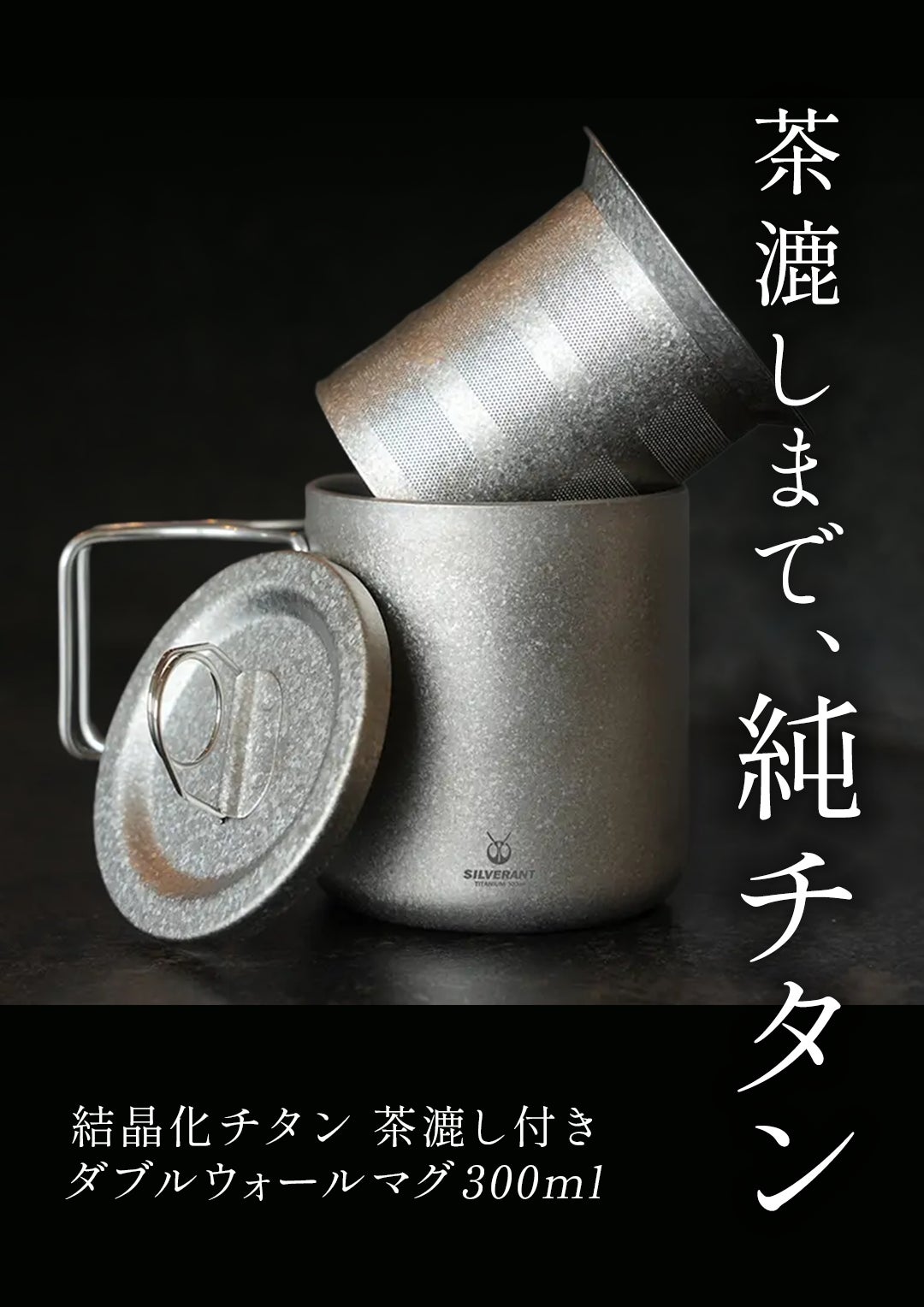 結晶化チタン 茶漉し付きダブルウォールマグ 300ml