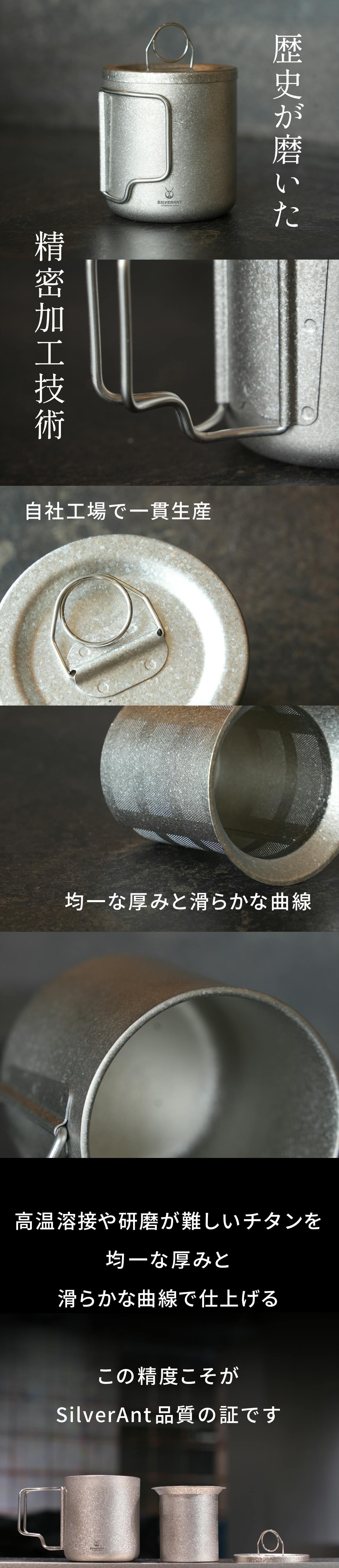 SilverAntの茶漉しは、本体と同じ純チタン99.7%以上。金属臭がなく、飲み物本来の香りと味を守ります。