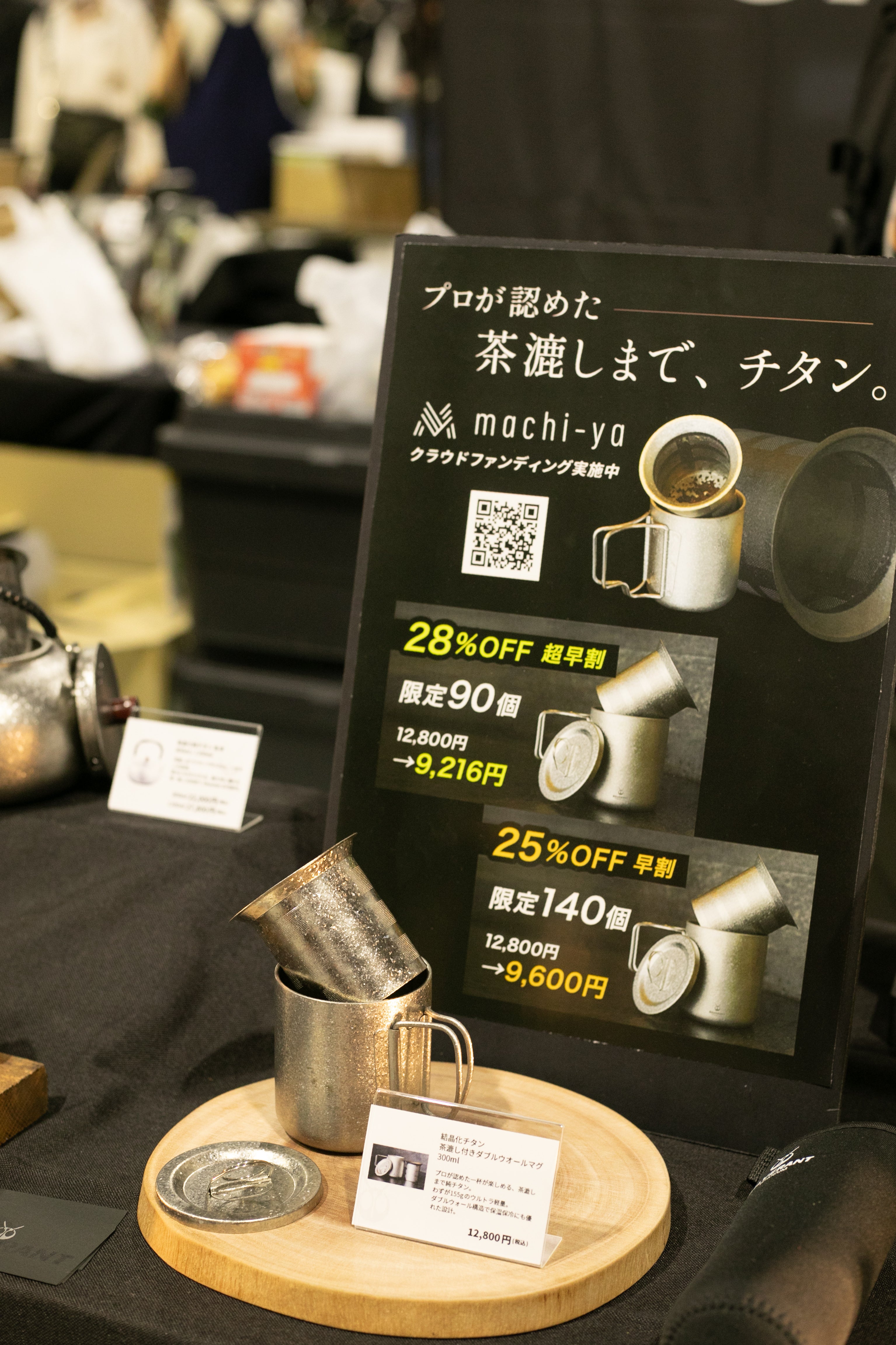 気温が下がり、冬の気配を感じるようになってきました。寒い季節は、結晶化チタンのきらめきを眺めながら、あたたかい飲み物をゆっくり味わいませんか☺︎?この度、FIELDSTYLE EXPO 2025(11月15日〜16日・愛知県国際展示場)にて、「結晶化チタン 茶漉し付き ダブルウォールマグ」を展示しました。来場者の方からは、「machi-yaで見て、ずっと欲しいと思っていたんです」「この茶漉し、メッシュの細かさがすごい」など、嬉しい声をたくさんいただきました。実際に手に取っていただくことで、オンラインでは伝わりにくいチタンの質感や軽さ、結晶化の美しさを感じていただき、その場でご購入を決めてくださる方もたくさんいらっしゃいました。ーーーお得にご支援いただけるのは 11月30日までです!最大33%割引・数量限定 でご購入いただけるこの機会をお見逃しなく。https://camp-fire.jp/projects/873370/view