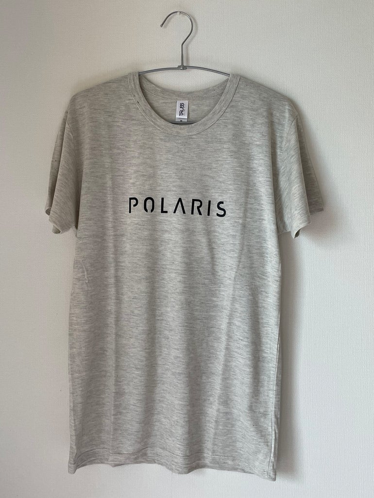 LOGO C:POLARISロゴを前面、八芒星をネック後ろに配置。オートミールにブラック印刷。トライブレンドの柔らかな素材感です。