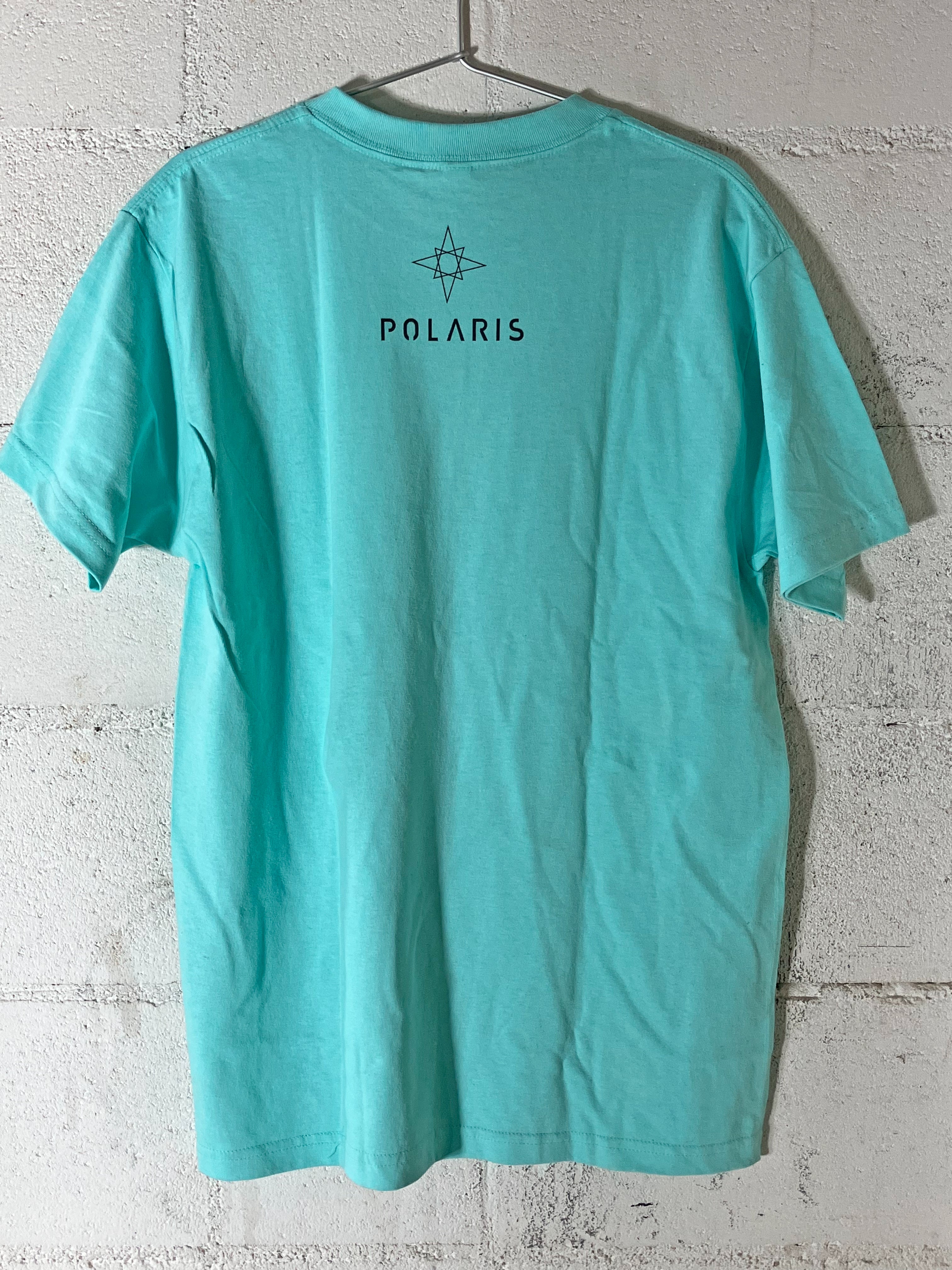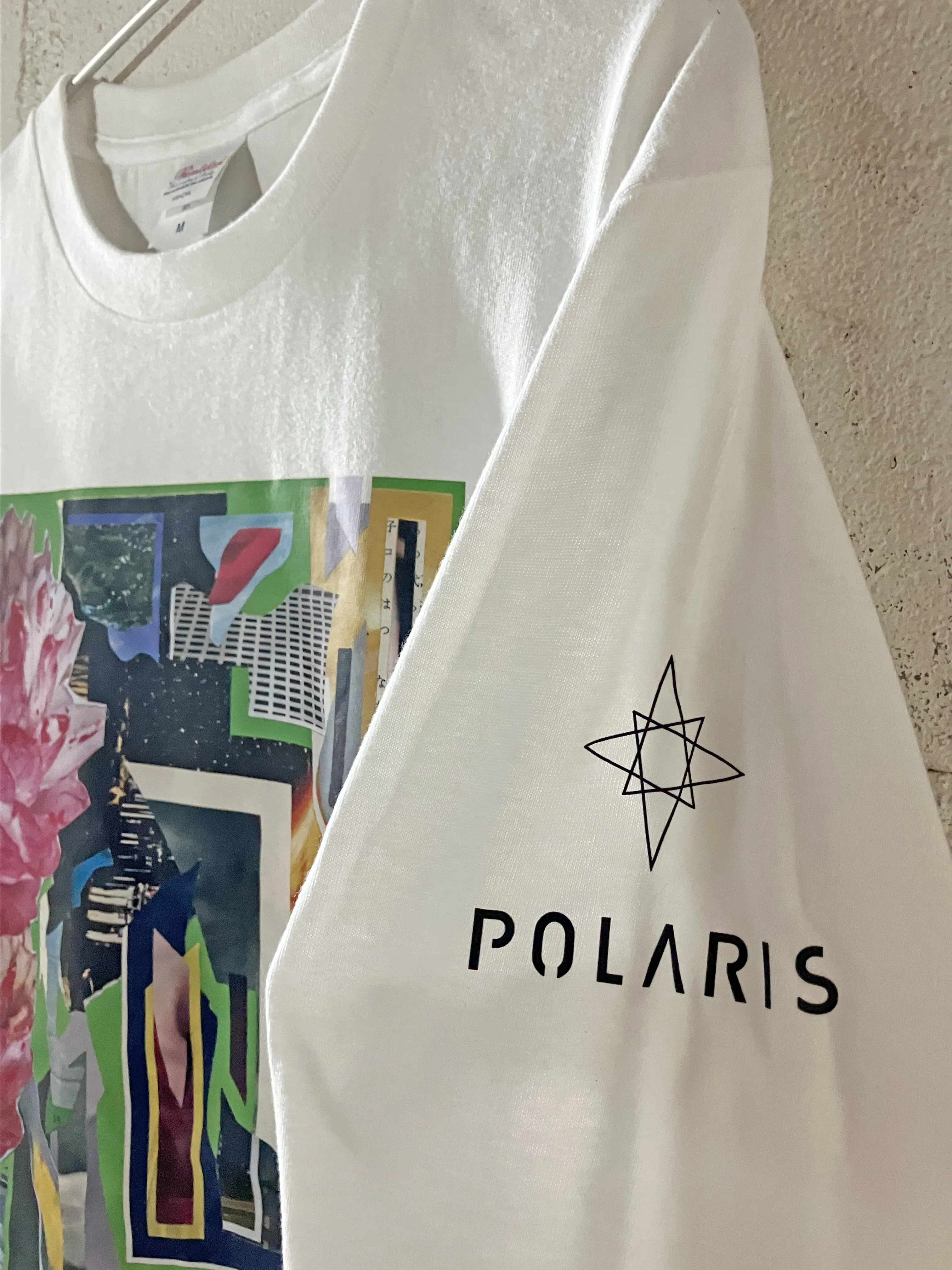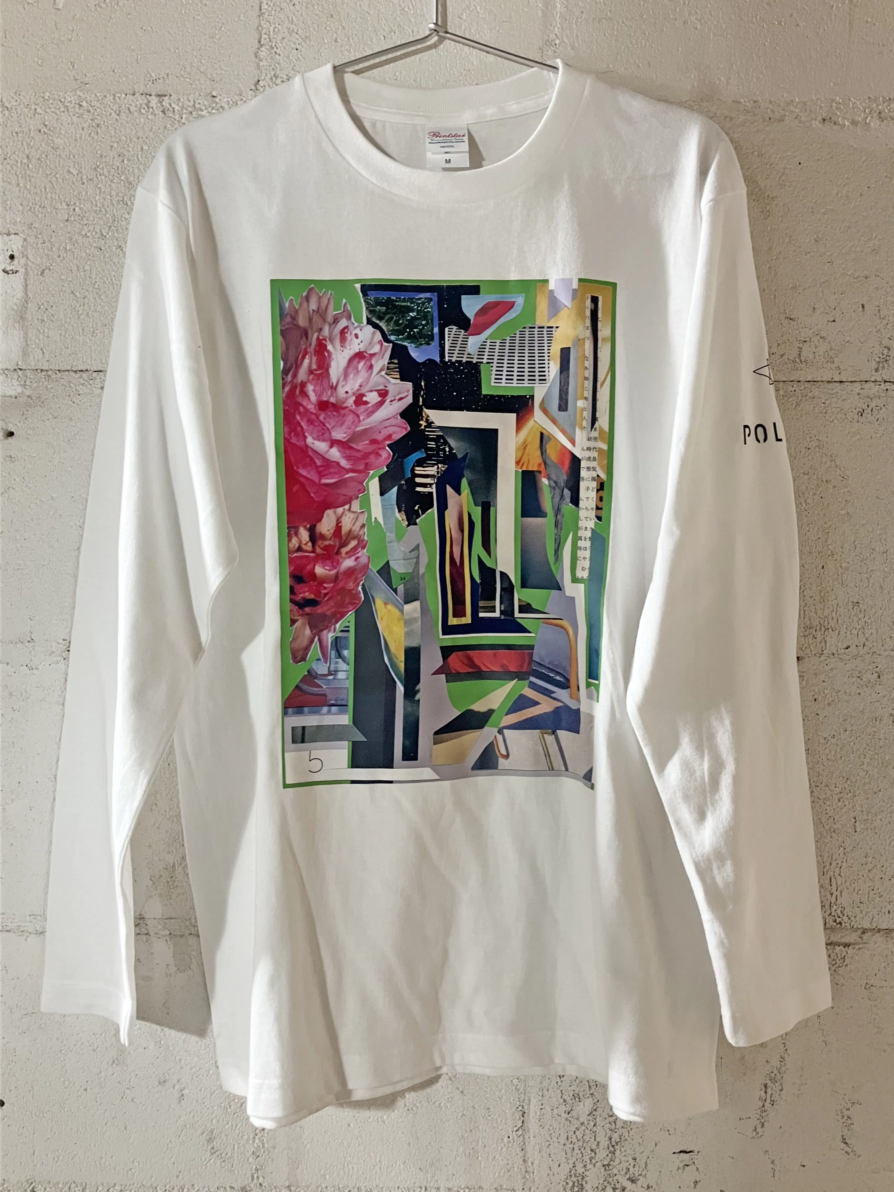 Terada氏の鮮明なコラージュ作品を薄目のロングTに。左肩にPOLARISロゴが入ります。