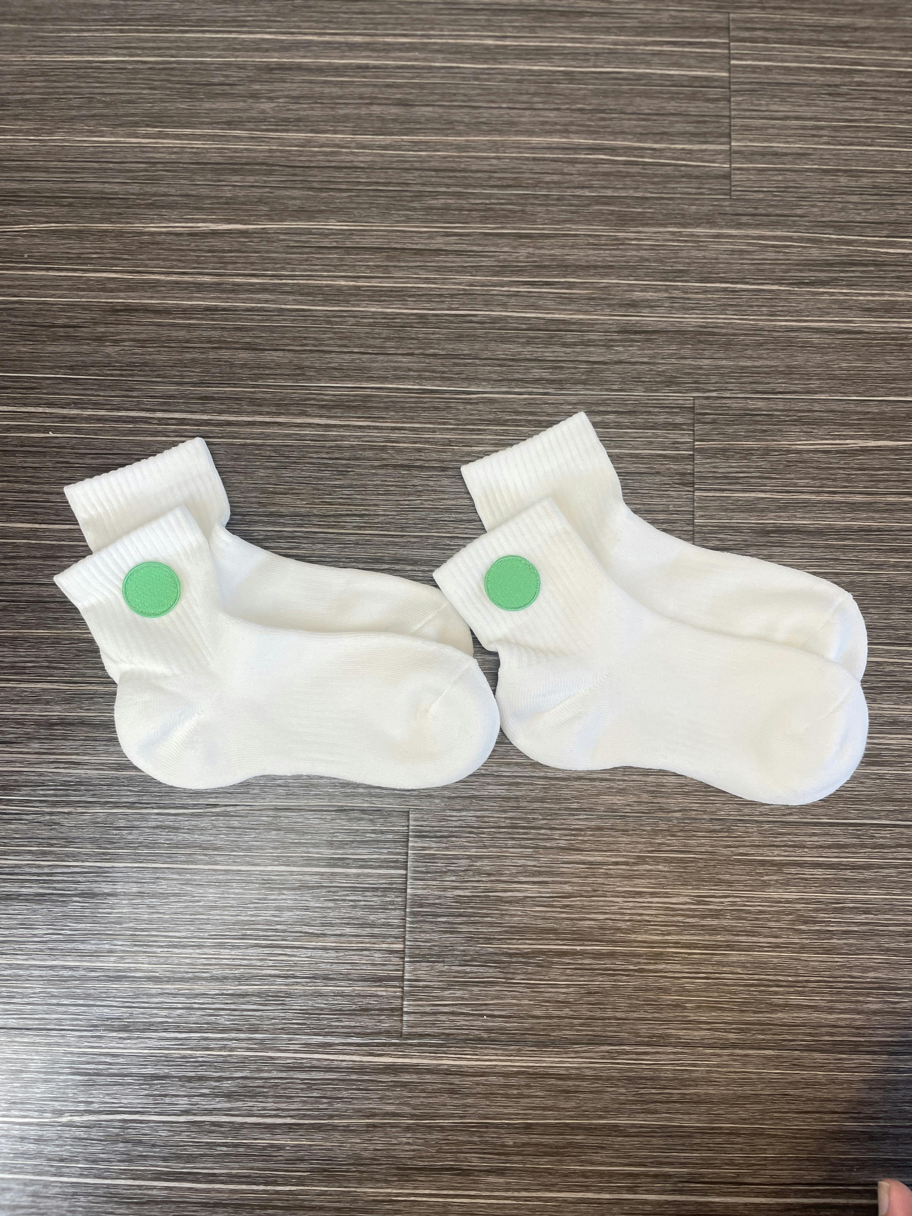 無地のソックスにワンポイントのワッペンものです。
