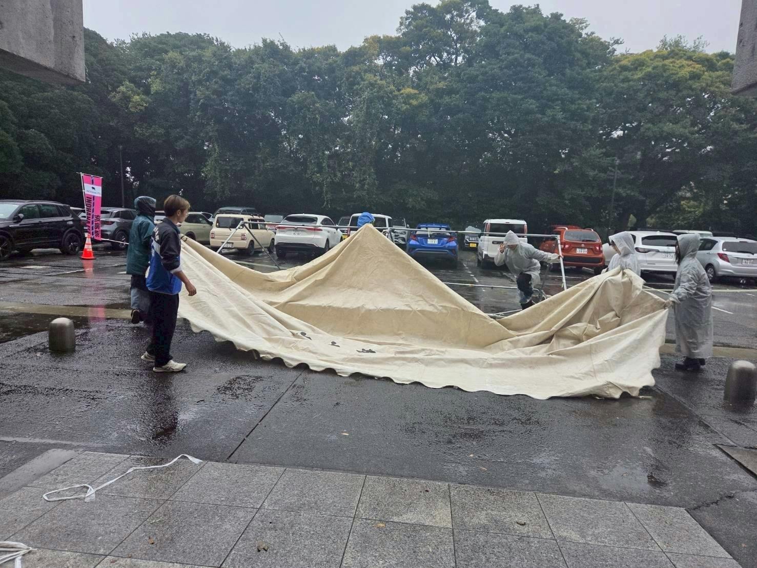 会場ではテントの組み立てが始まり、施設ゲートやフォトスポットづくりも順調。
