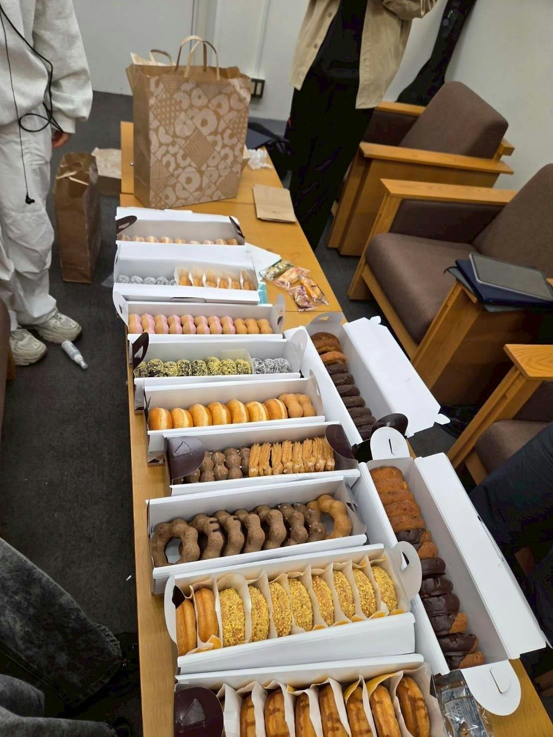 作業の合間には、先輩方からのドーナツの差し入れも。甘いご褒美で疲れも吹き飛びました!