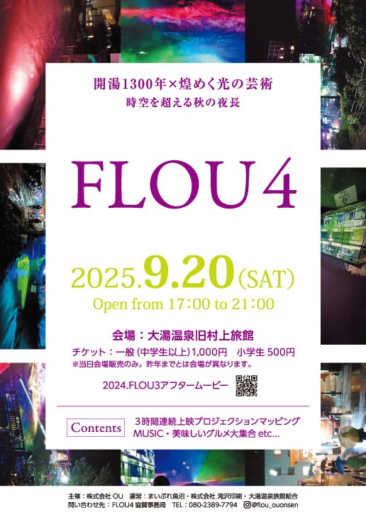 コシヒカリの里、新潟県魚沼市大湯温泉にて4回目の開催となります、プロジェクションマッピングイベント、FLOU4からのお願いです。