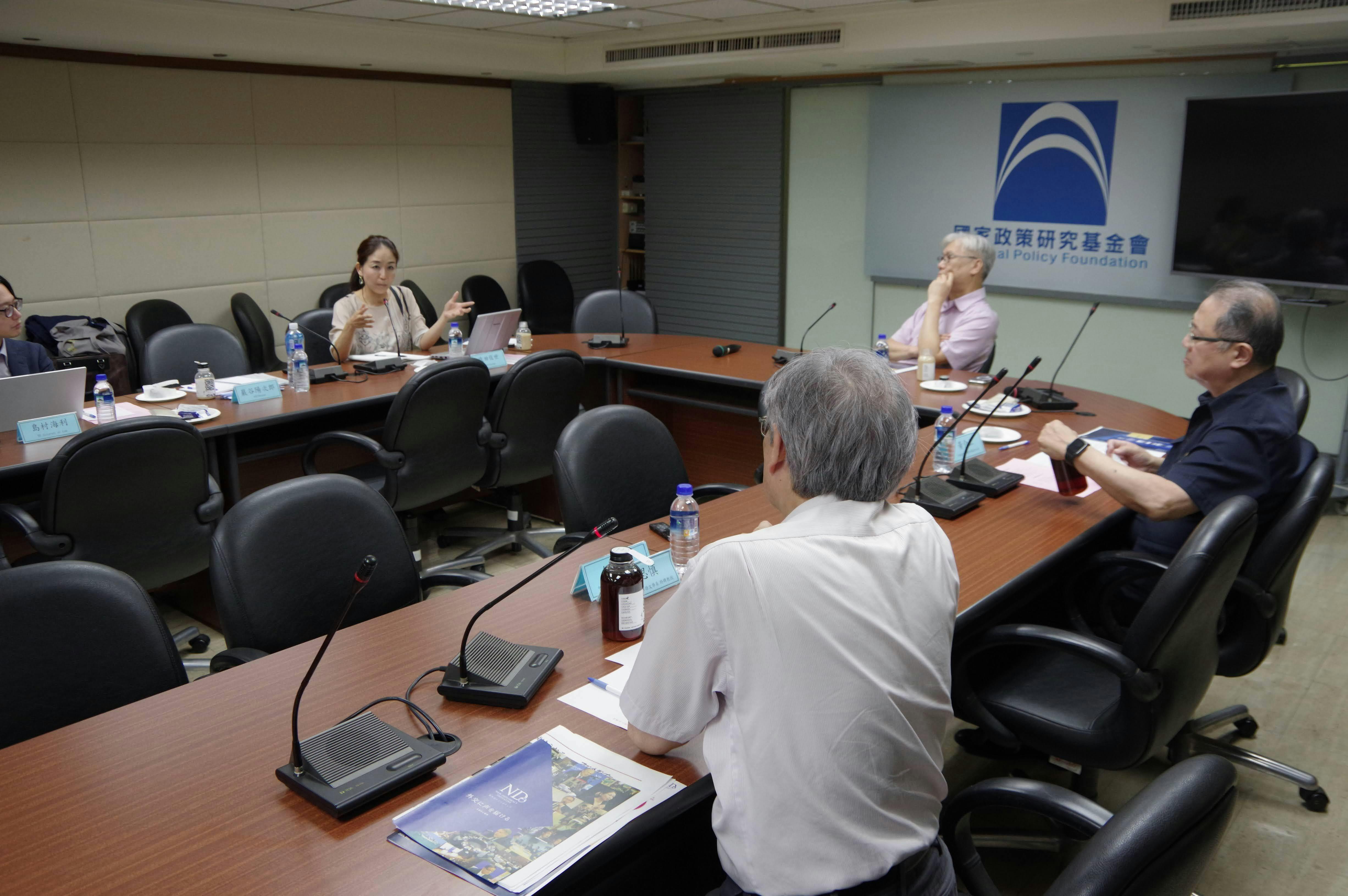 その後、かつての馬英九政権の外交ブレーンを務めた方を含め、現在の国民党中枢で政治・外交政策に深く関わっている3名と面談しました。日本国内では国民党に対して「中国寄りで保守的」という見方が目立ちますが、中国との関わり方を熟知しているからこそ、衝突を回避し、緊張を下げるための現実的な対応ができるとの説明をいただきました。特に「独立」の姿勢を強める民進党政権下において両岸の公式な対話のチャンネルが途絶えている現在、実質的に国民党が両岸のパイプの役割を果たしていることや、”War Game(机上演習)”だけでなく、”Preventing War Game(戦争回避のためのシナリオプランニング)”が必要であることなどのお話をいただきました。