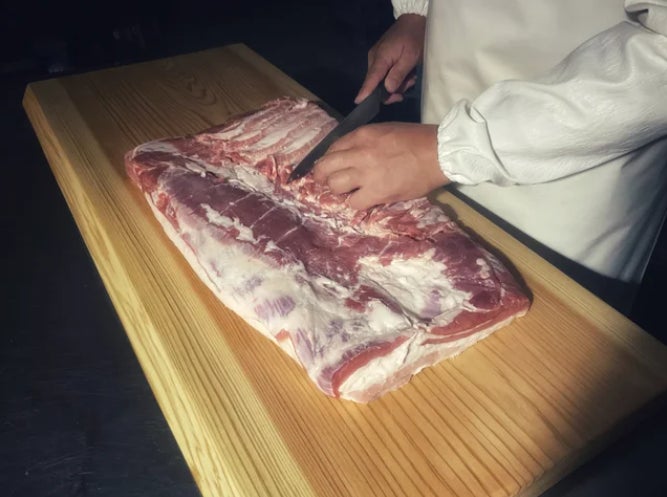 ねんりんチャーシューは豚のばら肉2枚を贅沢に使って作ります!!