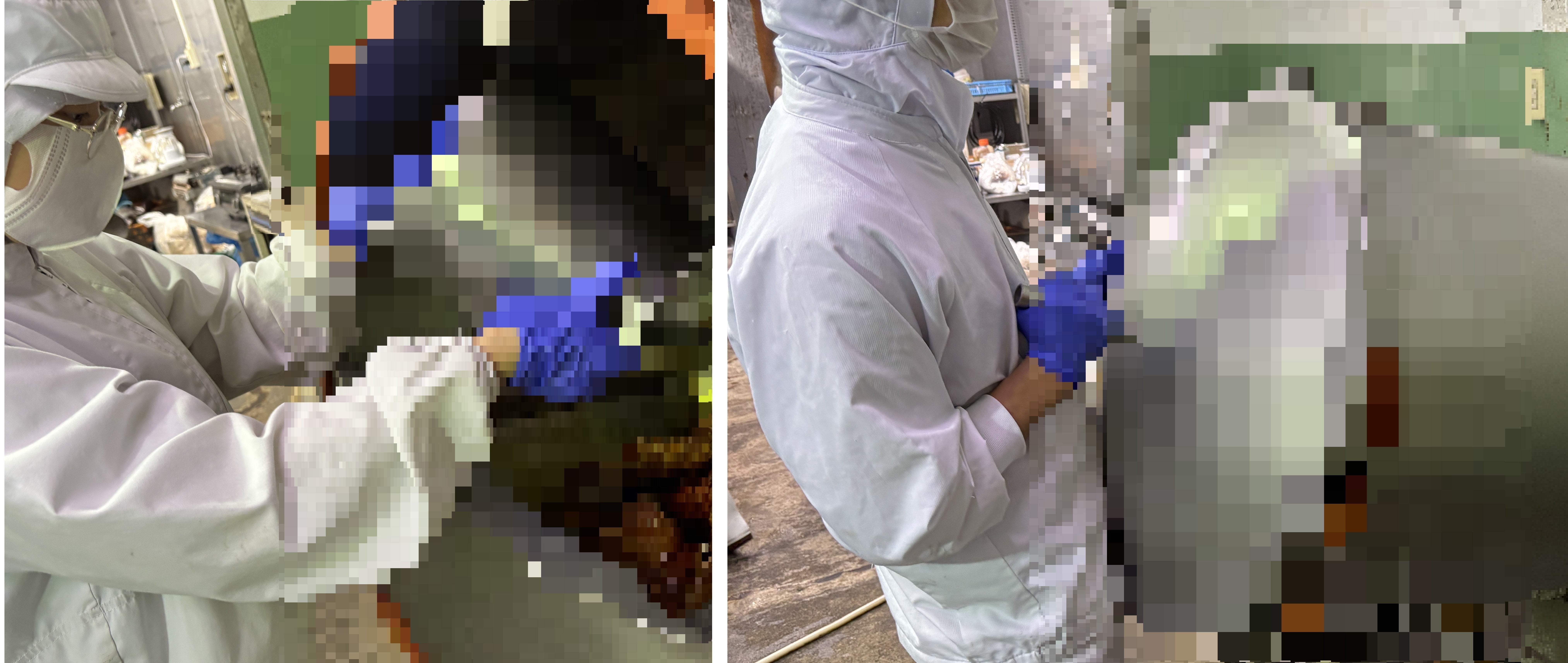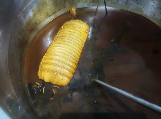 味を染み込ませるためにタレに付けて圧力を掛けます。※企業秘密!!
