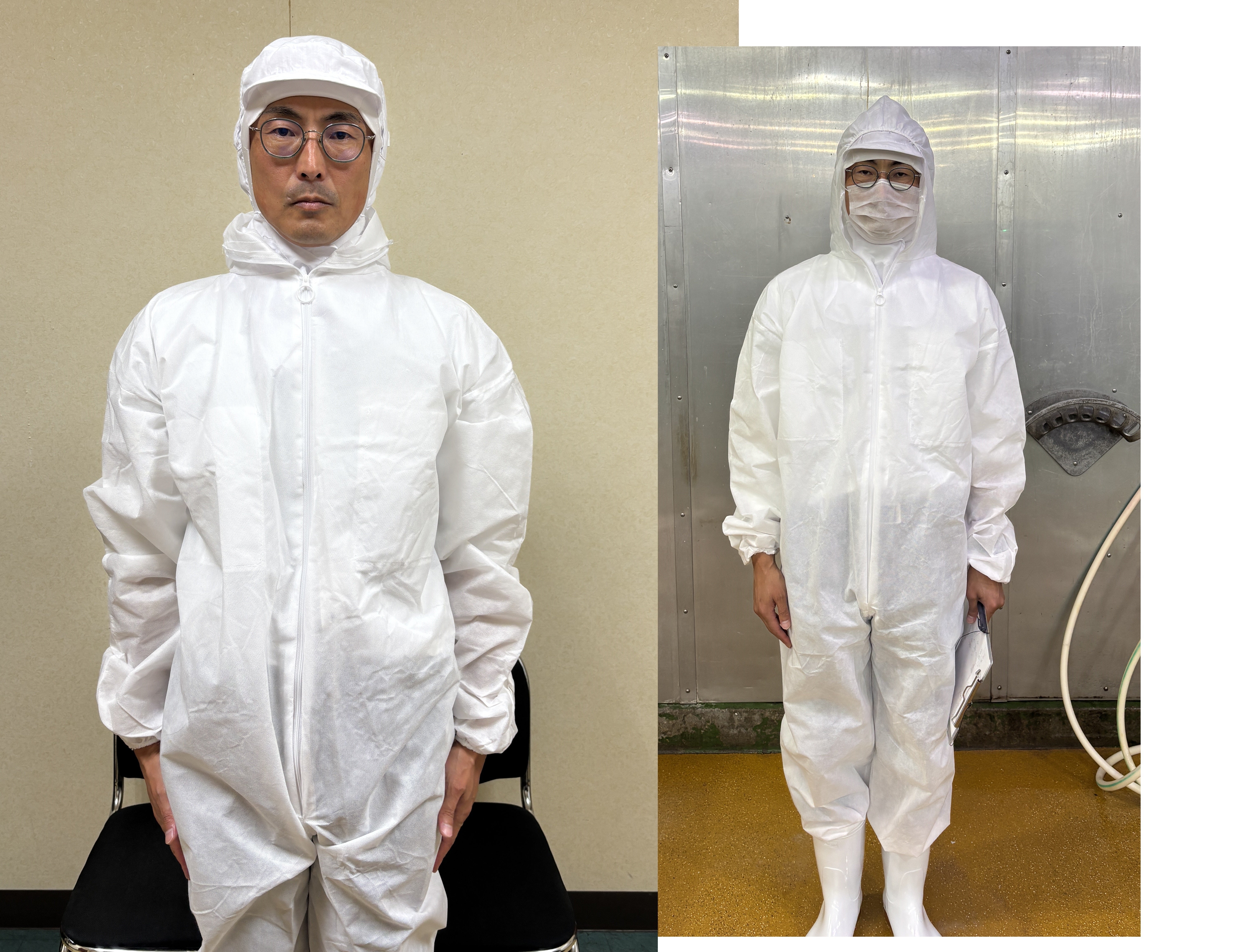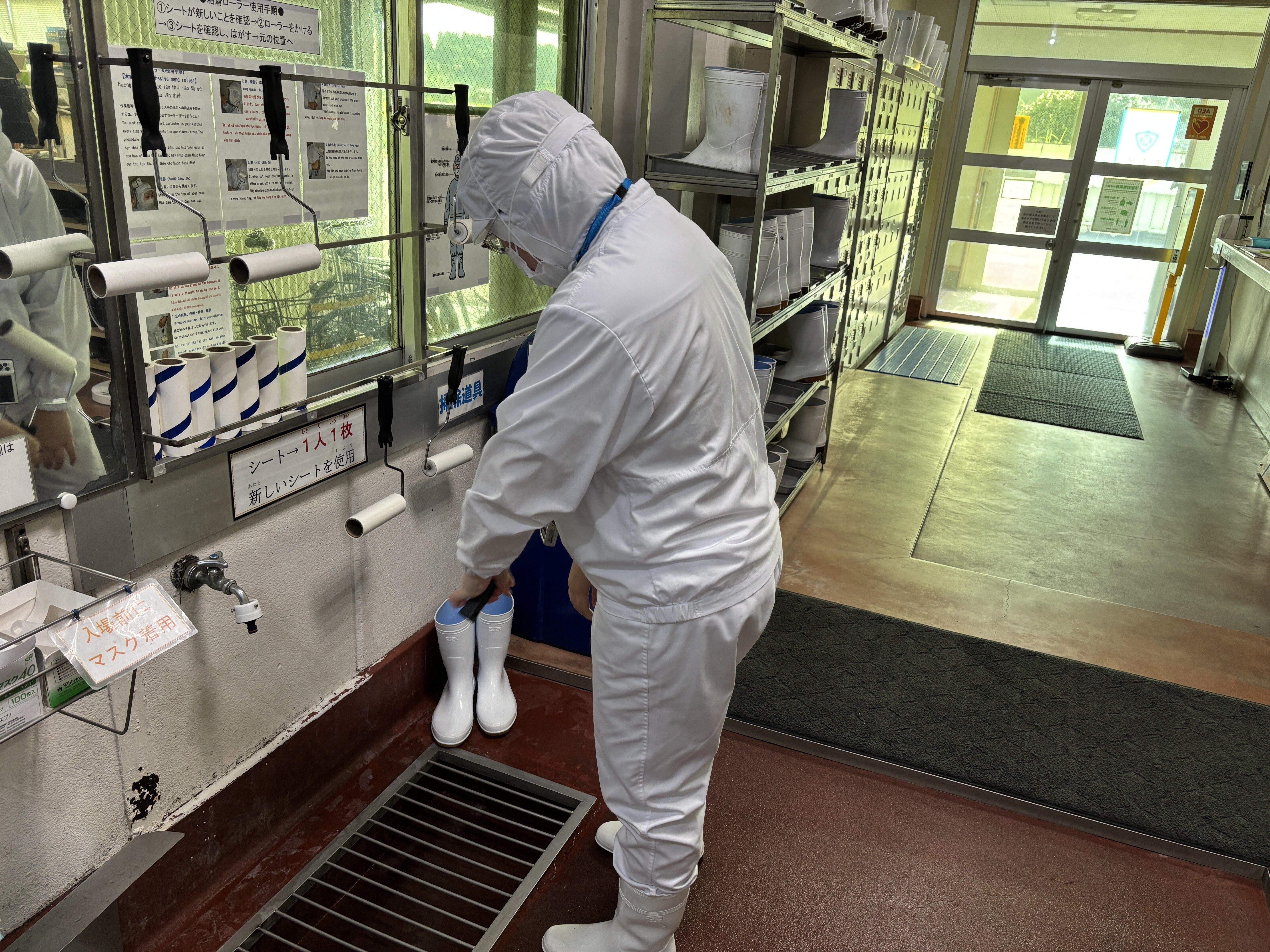 ころころローラーで作業着もチェック。ほこり一つも持ち込みません!