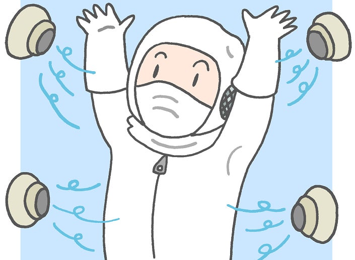 エアジェットでほこりや目に見えないゴミを吹き飛ばし、さらにローラーで作業着をきれいにします。