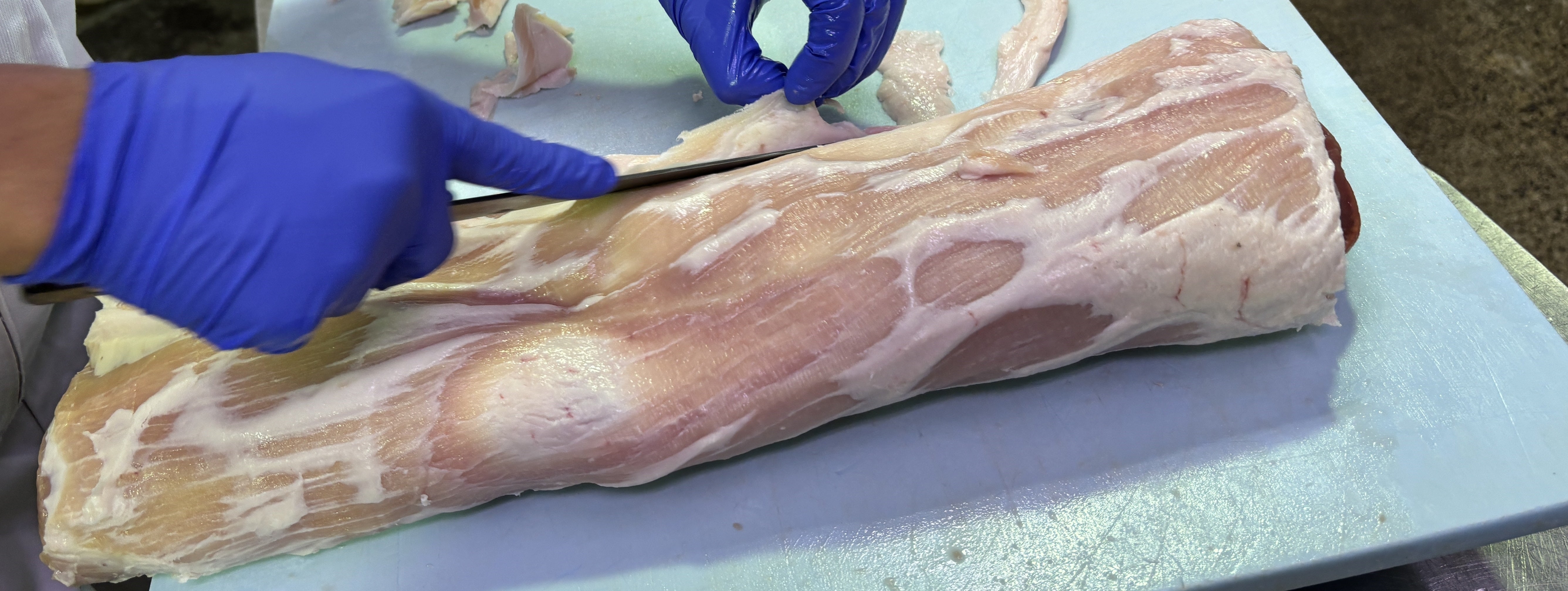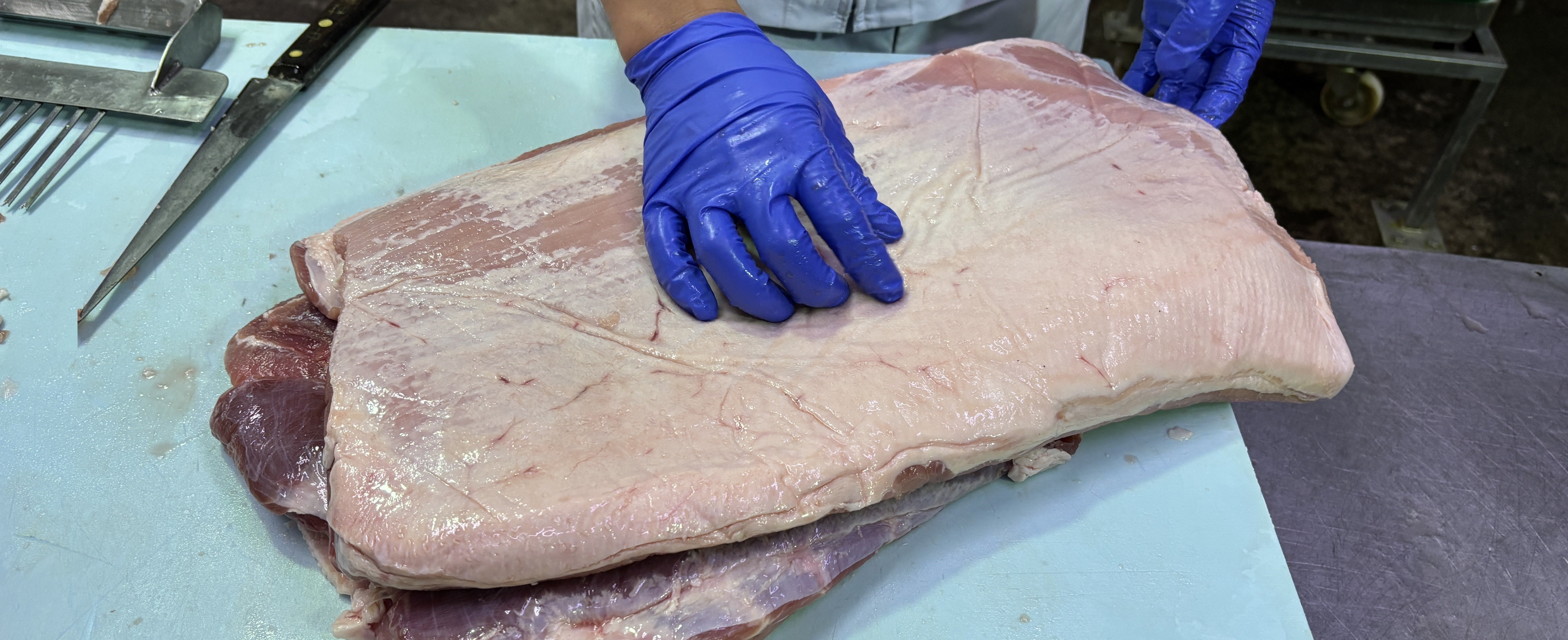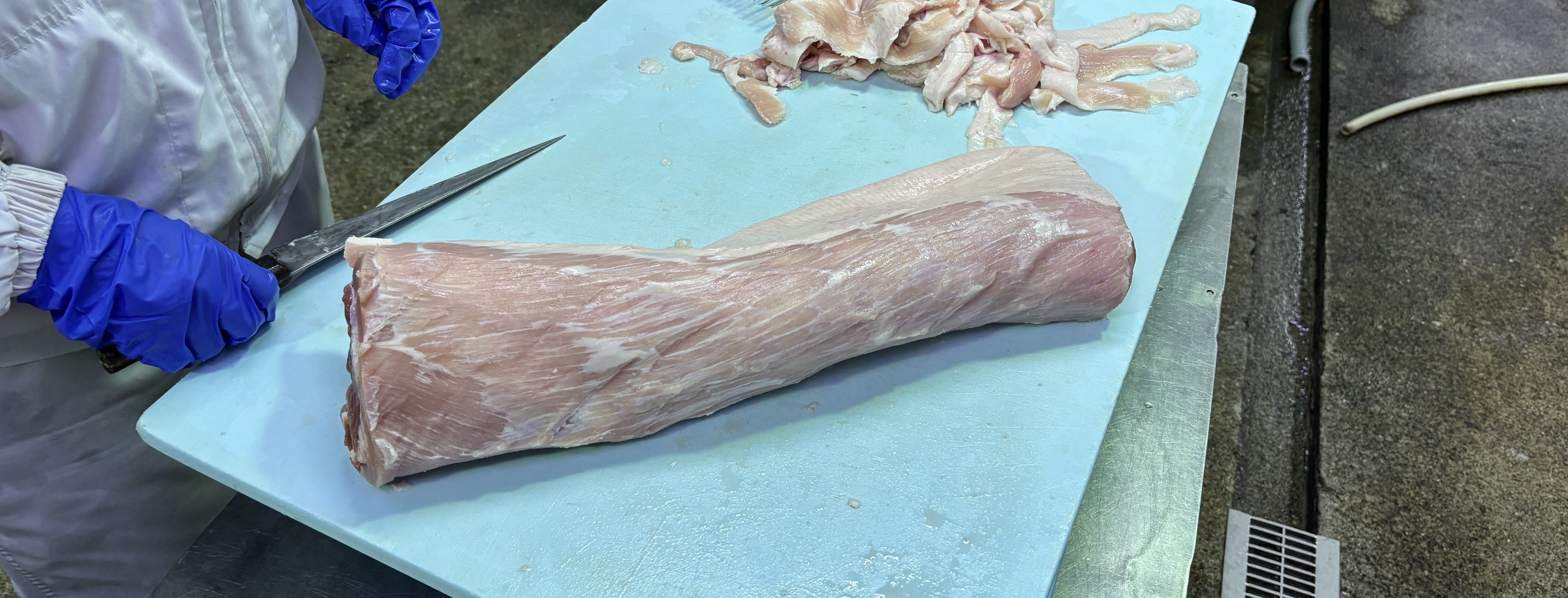 肉のプロがチャーシューに合った脂、肉質をもつ肉を厳選しています。