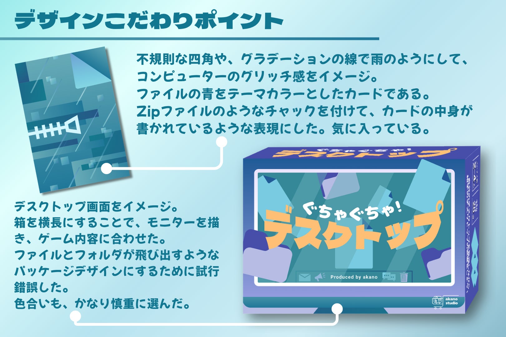 私の人生において、ボードゲーム制作に参入するかどうかの分岐点となっています。どうかこの「ぐちゃぐちゃデスクトップ」を色々な方に遊んでいただきたいです。