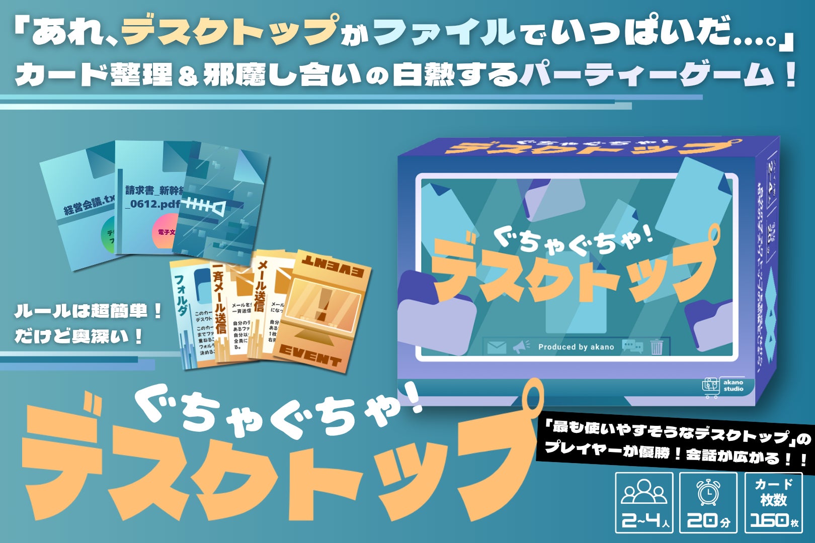 そんな中、思いつきました。自分のデスクトップ画面を見て、これはボードゲーム化したら楽しそう!と。このボードゲームは、戦略的な遊び方ができるパーティーゲームである一方で、このIT社会の中で役に立つようなものになると思います。