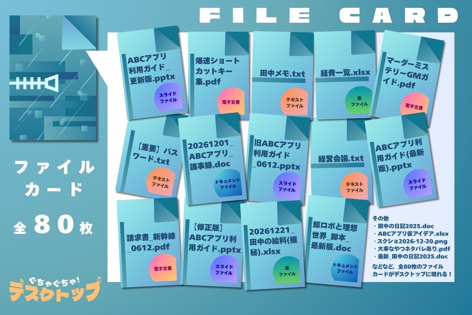 さらに「ファイルカード」には、最新版や更新版、修正版のような悩ましいものや、誰かの給与明細のPDFや、分類に困るものも!