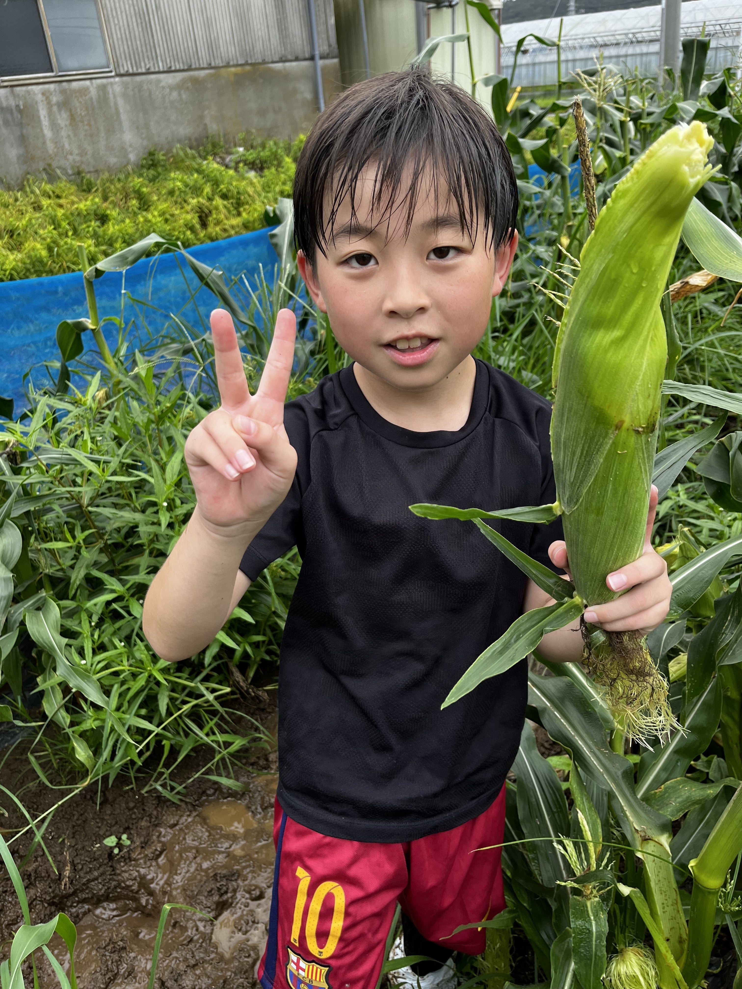 陸上競技場でのラントレゴールドラッシュファームでのとうもろこし収穫